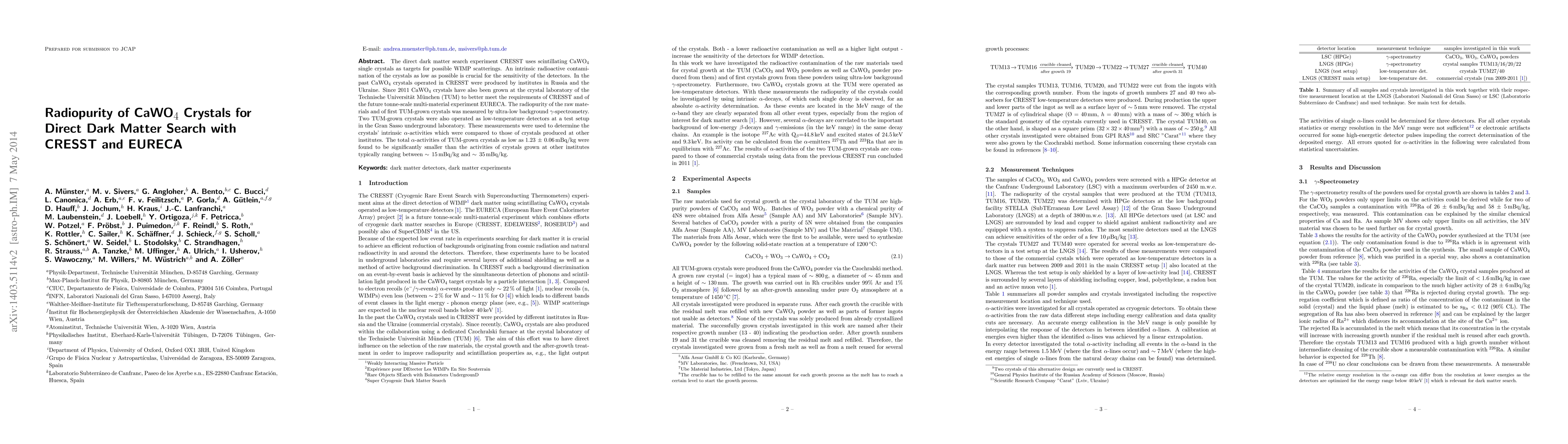 The direct dark matter search experiment CRESST uses scintillating CaWO$_4$ single crystals as targets for possible WIMP scatterings. An intrinsic radioactive contamination of the crystals as low as possible is crucial for the sensitivity of the detectors. In the past CaWO$_4$ crystals operated in CRESST were produced by institutes in Russia and the Ukraine. Since 2011 CaWO$_4$ crystals have also been grown at the crystal laboratory of the Technische Universit\"at M\"unchen (TUM) to better meet the requirements of CRESST and of the future tonne-scale multi-material experiment EURECA. The radiopurity of the raw materials and of first TUM-grown crystals was measured by ultra-low background $\gamma$-spectrometry. Two TUM-grown crystals were also operated as low-temperature detectors at a test setup in the Gran Sasso underground laboratory. These measurements were used to determine the crystals' intrinsic $\alpha$-activities which were compared to those of crystals produced at other institutes. The total $\alpha$-activities of TUM-grown crystals as low as 1.23 $\pm$ 0.06 mBq/kg were found to be significantly smaller than the activities of crystals grown at other institutes typically ranging between ~15 mBq/kg and ~35 mBq/kg.
