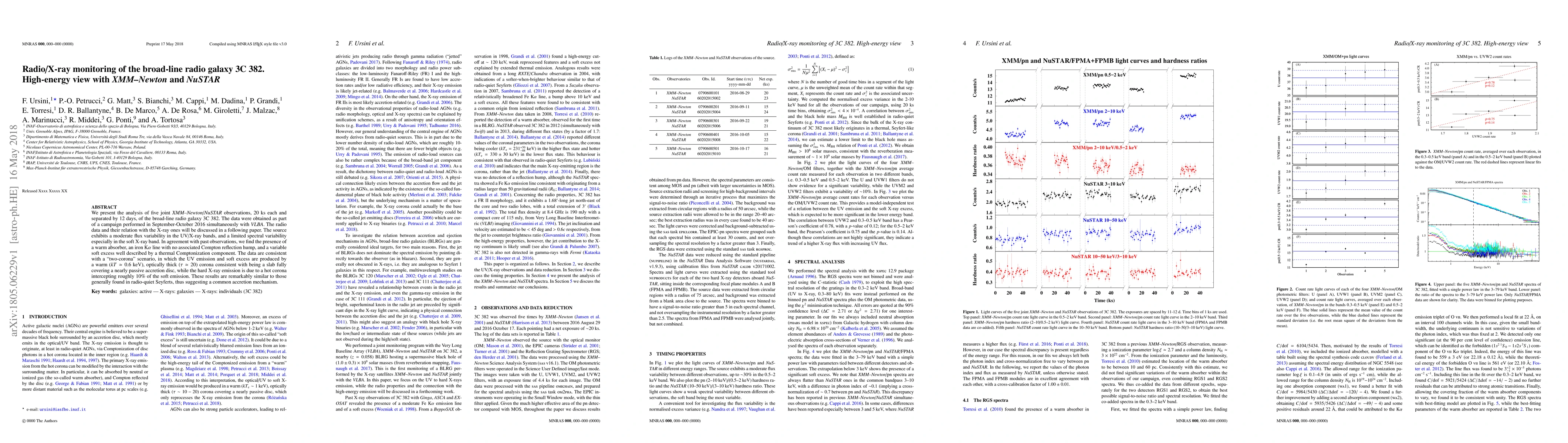 Researchers analyzed XMM-Newton and NuSTAR data from the broad-line radio galaxy 3C 382 to study its high-energy emission, finding a 'two-corona' scenario with a warm absorber and variable soft excess.