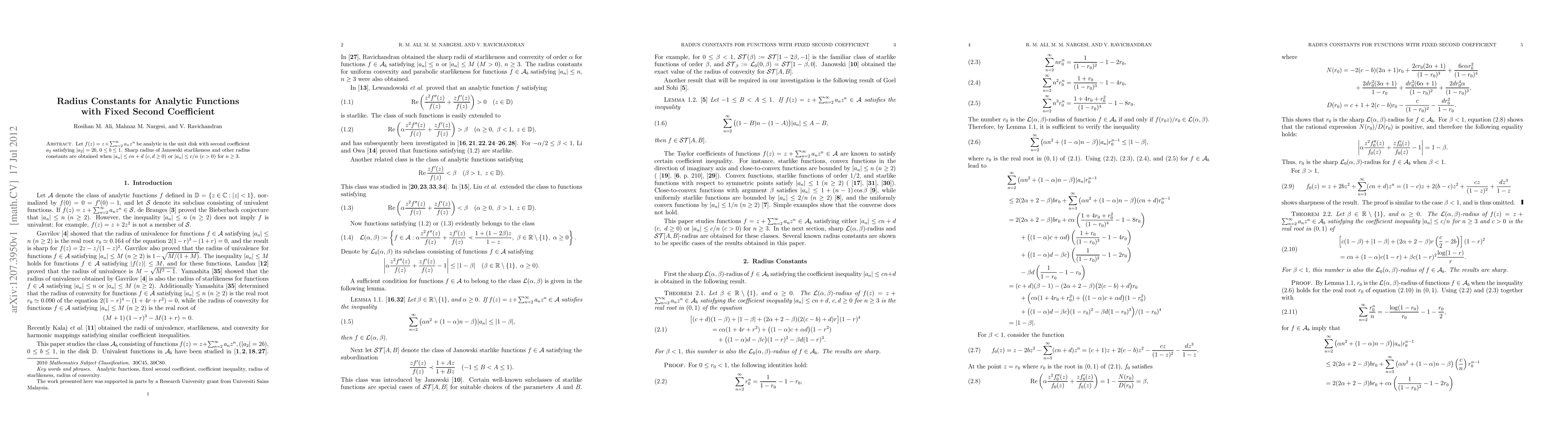 Let $f(z)=z+\sum_{n=2}^{\infty}a_nz^n$ be analytic in the unit disk with second coefficient $a_2$ satisfying $|a_2|=2b$, $0\leq b\leq1$. Sharp radius of Janowski starlikeness and other radius constants are obtained when $|a_n|\leq cn+d$ ($c,d\geq0$) or $|a_n|\leq c/n$ ($c>0$) for $n\geq3$.