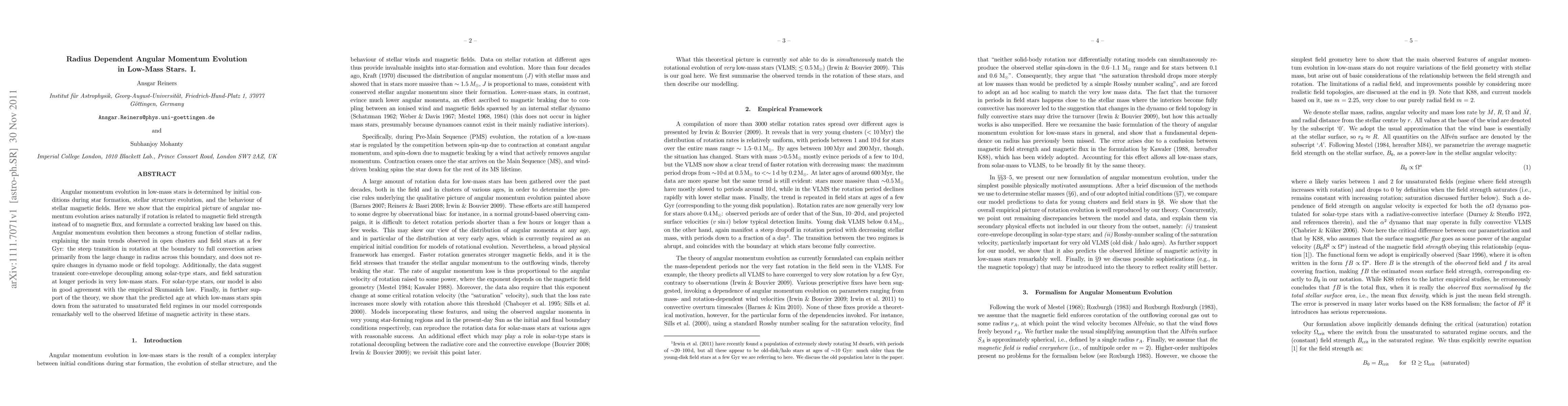 This paper proposes a new understanding of angular momentum evolution in low-mass stars, suggesting that rotation is linked to magnetic field strength rather than magnetic flux. The study formulates a corrected braking law based on this relationship, showing that angular momentum evolution is strongly dependent on stellar radius, which explains observed trends in rotation without requiring changes in dynamo mode or field topology.