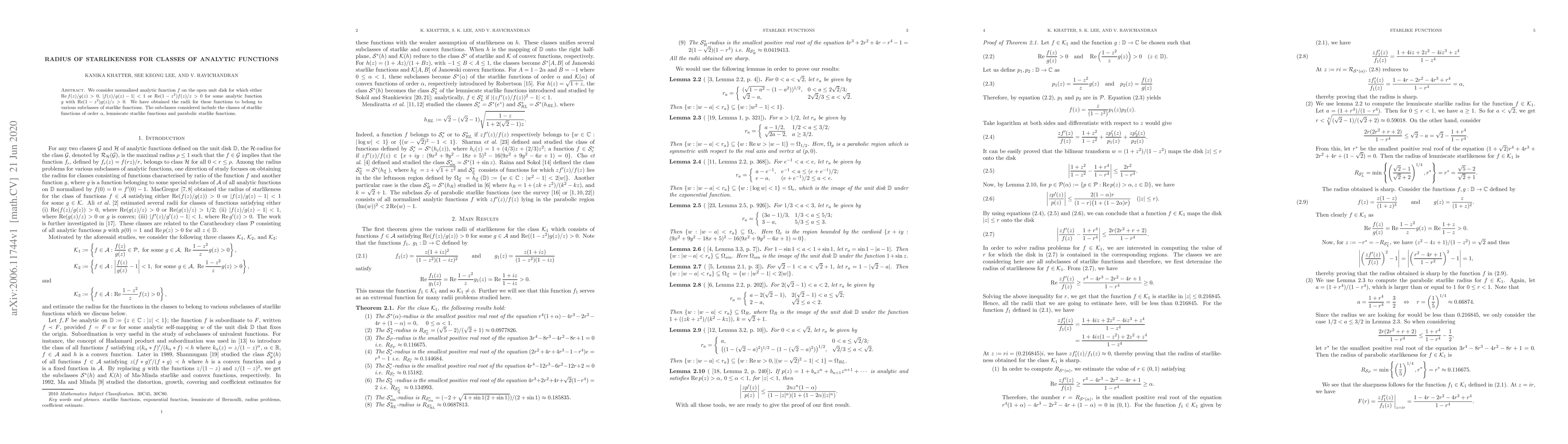 We consider normalized analytic function $f$ on the open unit disk for which either $\operatorname{Re} f(z)/g(z)>0$, $|f(z) /g(z) - 1|<1$ or $\operatorname{Re} (1-z^2) f(z) /z>0$ for some analytic function $g$ with $\operatorname{Re} (1-z^2) g(z) /z>0$. We have obtained the radii for these functions to belong to various subclasses of starlike functions. The subclasses considered include the classes of starlike functions of order $\alpha$, lemniscate starlike functions and parabolic starlike functions.