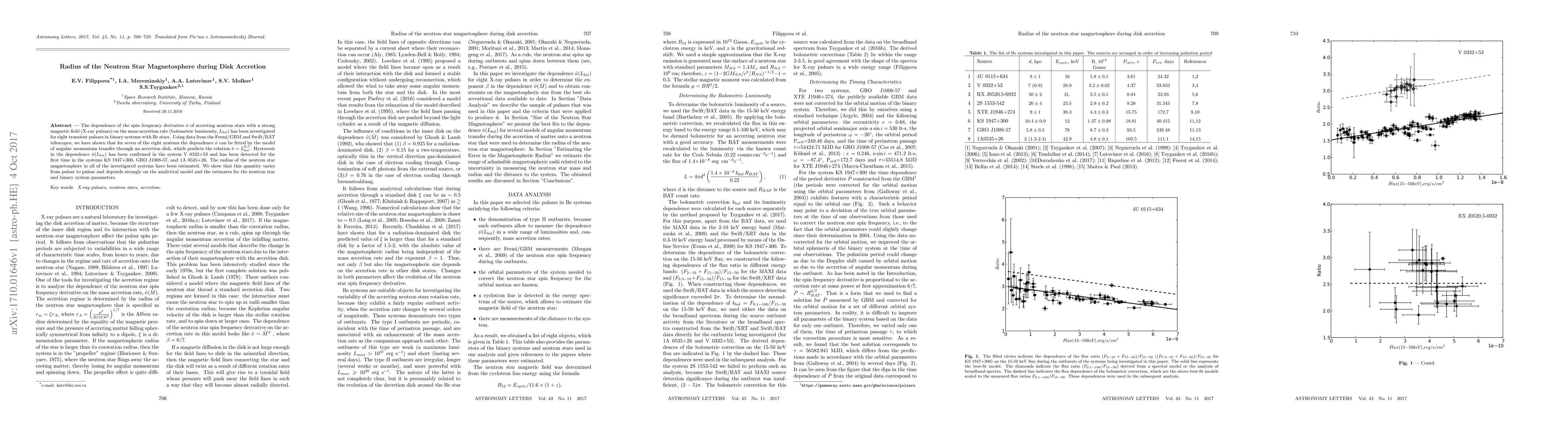 This study investigates the spin frequency derivative $\dot{\nu}$ of eight accreting neutron stars, revealing a $\dot{\nu}\sim L^{6/7}_{bol}$ relationship for seven systems. The research estimates the magnetosphere radius, showing significant variability dependent on the model and system parameters.