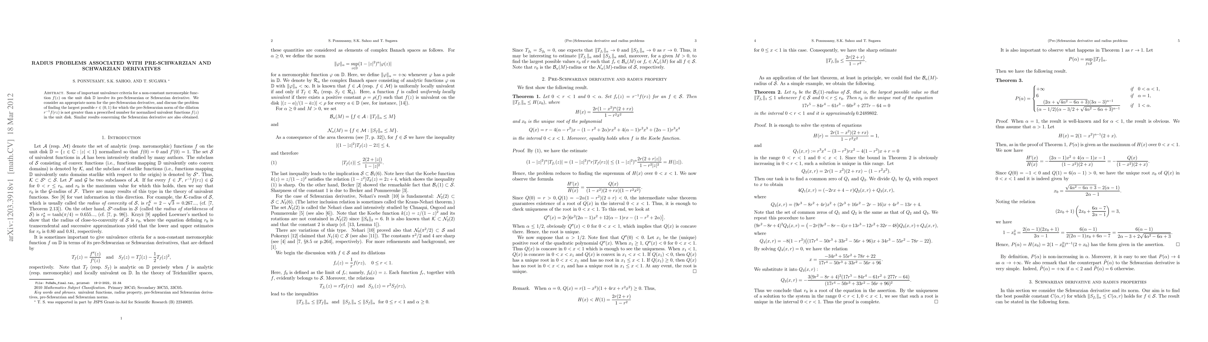 Some of important univalence criteria for a non-constant meromorphic function $f(z)$ on the unit disk $\ID$ involve its pre-Schwarzian or Schwarzian derivative. We consider an appropriate norm for the pre-Schwarzian derivative, and discuss the problem of finding the largest possible $r\in (0,1)$ for which the pre-Schwarzian norm of the dilation $r^{-1}f(rz)$ is not greater than a prescribed number for normalized univalent functions $f(z)$ in the unit disk. Similar results concerning the Schwarzian derivative are also obtained