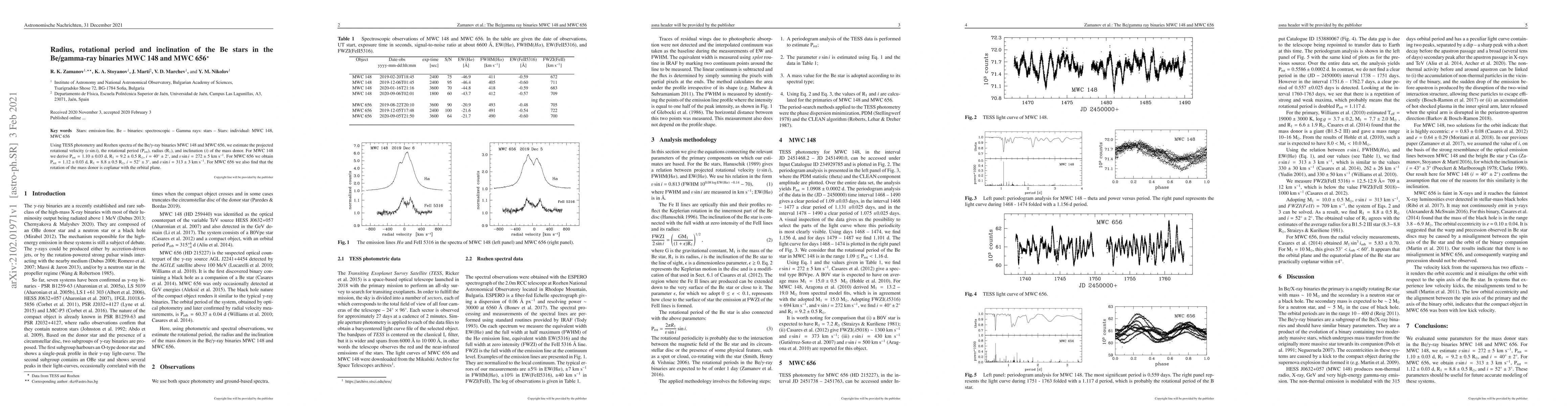 Researchers used TESS photometry and spectroscopy to study Be stars in binary systems MWC 148 and MWC 656, determining their rotational periods, radii, inclinations, and velocities.