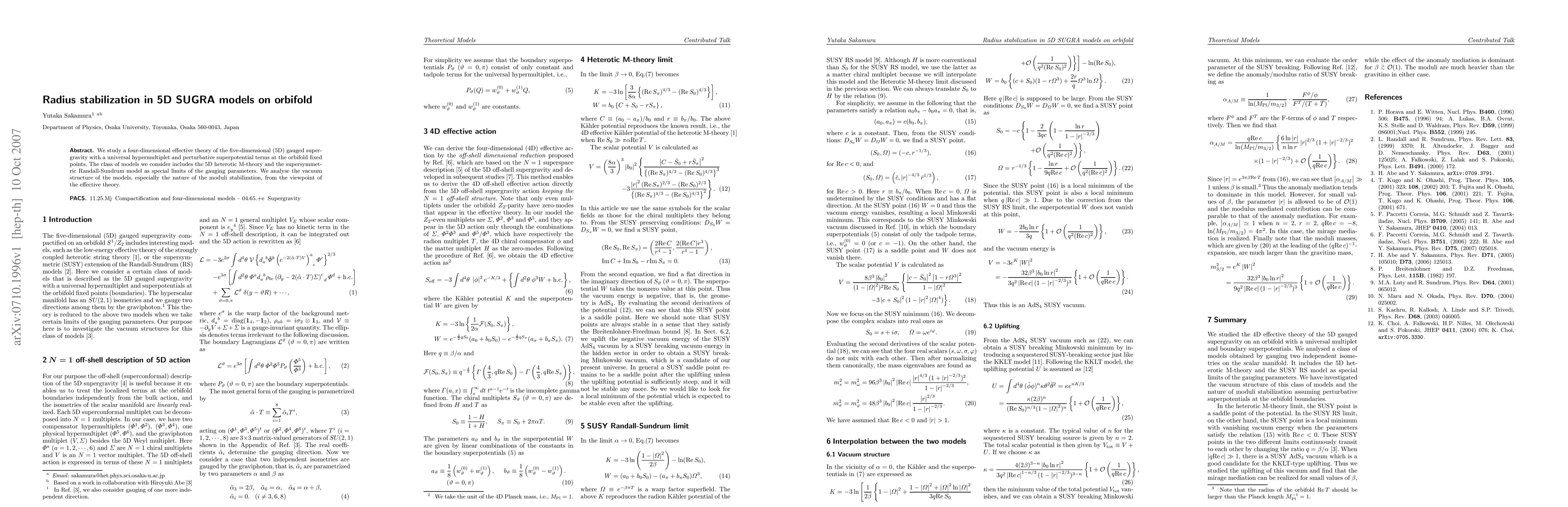 This paper investigates the stabilization of the extra-dimensional radius in 5D gauged supergravity models on orbifolds, focusing on the vacuum structure and moduli stabilization within the context of effective four-dimensional theories, including special limits like the heterotic M-theory and the Randall-Sundrum model.