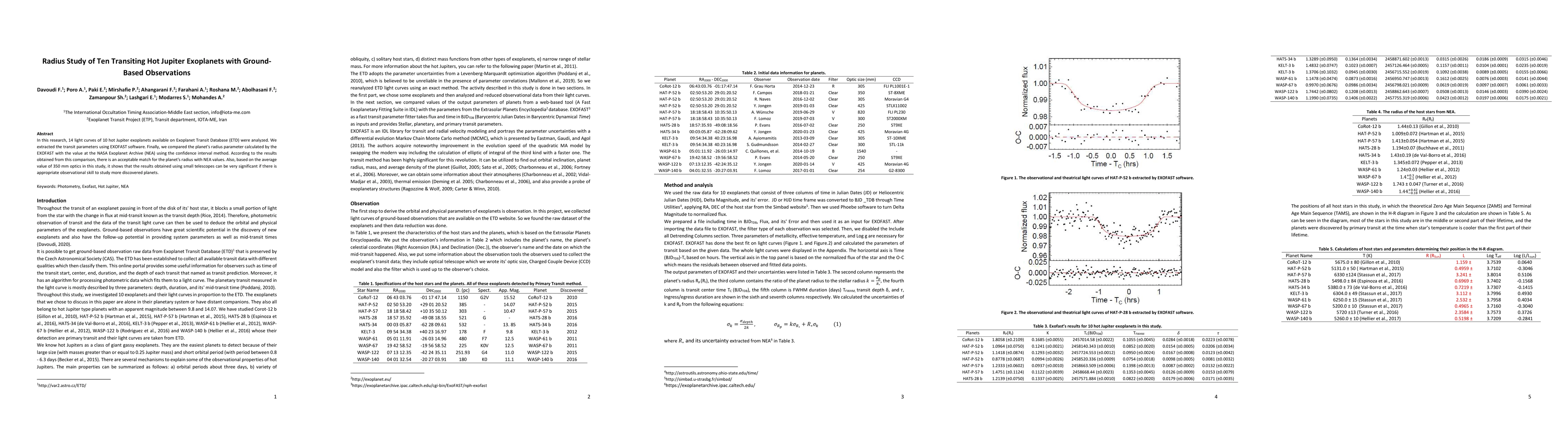 This study analyzed 10 hot Jupiter exoplanets using ground-based observations to measure their radius, finding an acceptable match with NASA archive values. Small telescopes can produce significant results if observational skills improve.