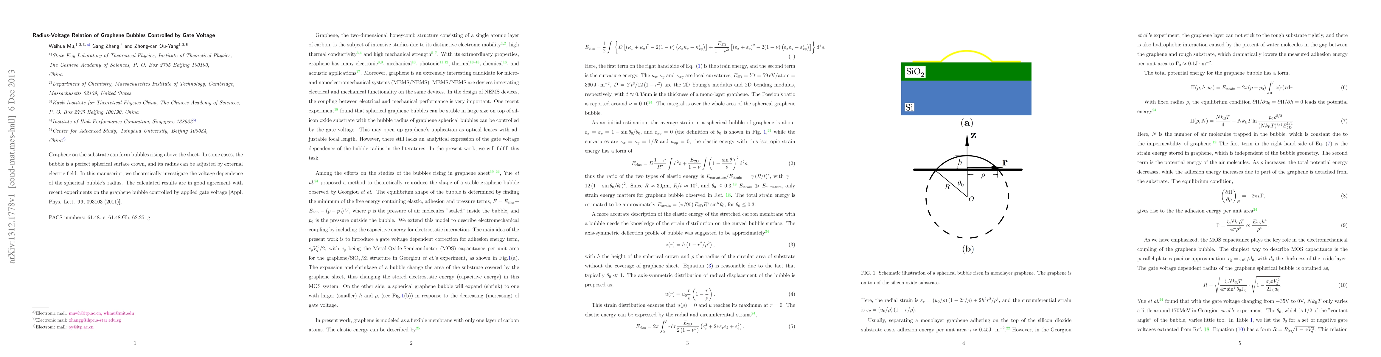 Researchers studied how applying a gate voltage affects the radius of bubbles on graphene sheets, finding a good match with previous experimental results.