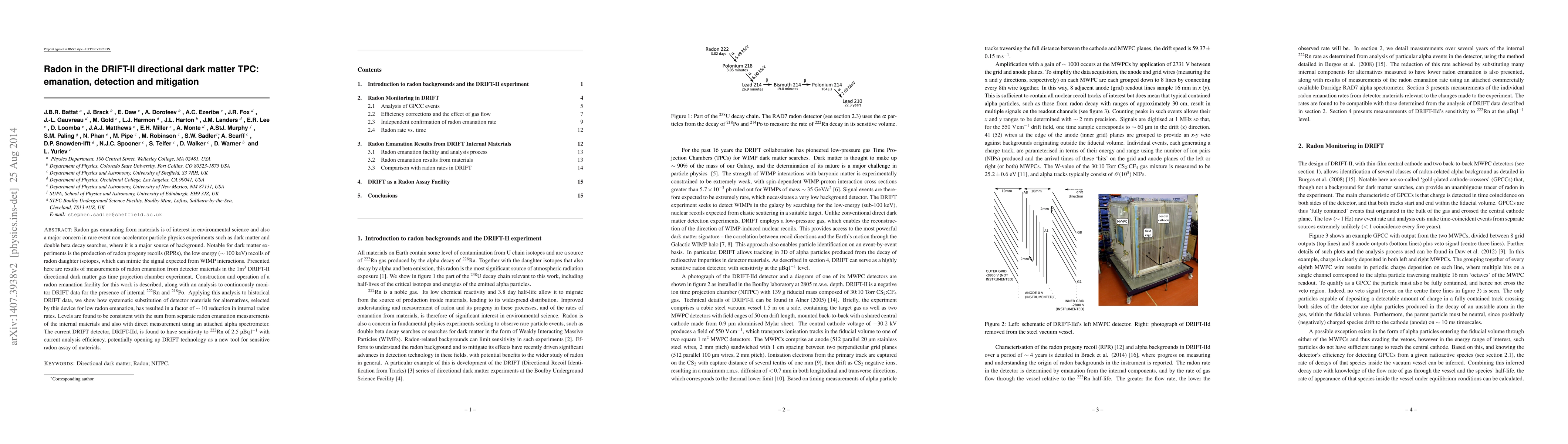 This paper discusses the emanation, detection, and mitigation of radon in the DRIFT-II directional dark matter TPC experiment, highlighting its role as a background source. The study details a facility for measuring radon from detector materials and shows a ~10-fold reduction in internal radon rates through material substitution, achieving sensitivity to 222Rn of 2.5 μBq/l.