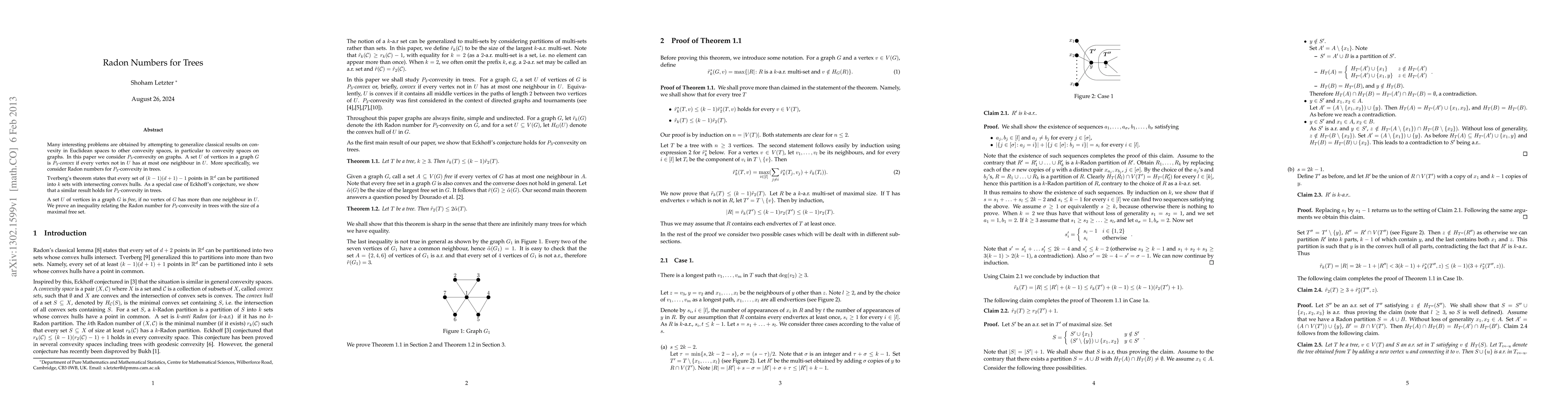 Many interesting problems are obtained by attempting to generalize classical results on convexity in Euclidean spaces to other convexity spaces, in particular to convexity spaces on graphs. In this paper we consider $P_3$-convexity on graphs. A set $U$ of vertices in a graph $G$ is $P_3$-convex if every vertex not in $U$ has at most one neighbour in $U$. More specifically, we consider Radon numbers for $P_3$-convexity in trees. Tverberg's theorem states that every set of $(k-1)(d+1)-1$ points in $\mathbb{R}^d$ can be partitioned into $k$ sets with intersecting convex hulls. As a special case of Eckhoff's conjecture, we show that a similar result holds for $P_3$-convexity in trees. A set $U$ of vertices in a graph $G$ is called free, if no vertex of $G$ has more than one neighbour in $U$. We prove an inequality relating the Radon number for $P_3$-convexity in trees with the size of a maximal free set.