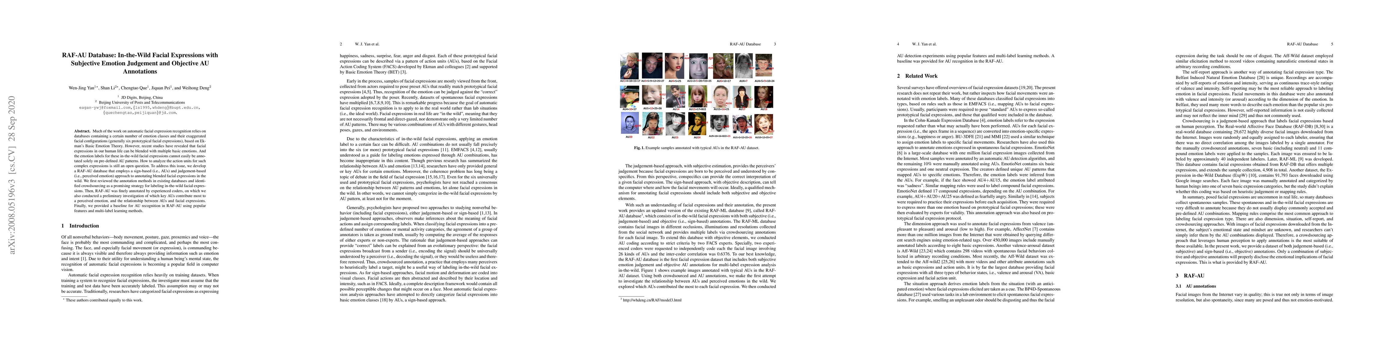 The RAF-AU database introduces a novel approach to annotating blended facial expressions in natural settings by combining action unit (AU) and subjective emotion annotations. This database aims to address the limitations of existing databases that rely on predefined emotion classes and provides a baseline for recognizing complex expressions using AUs.
