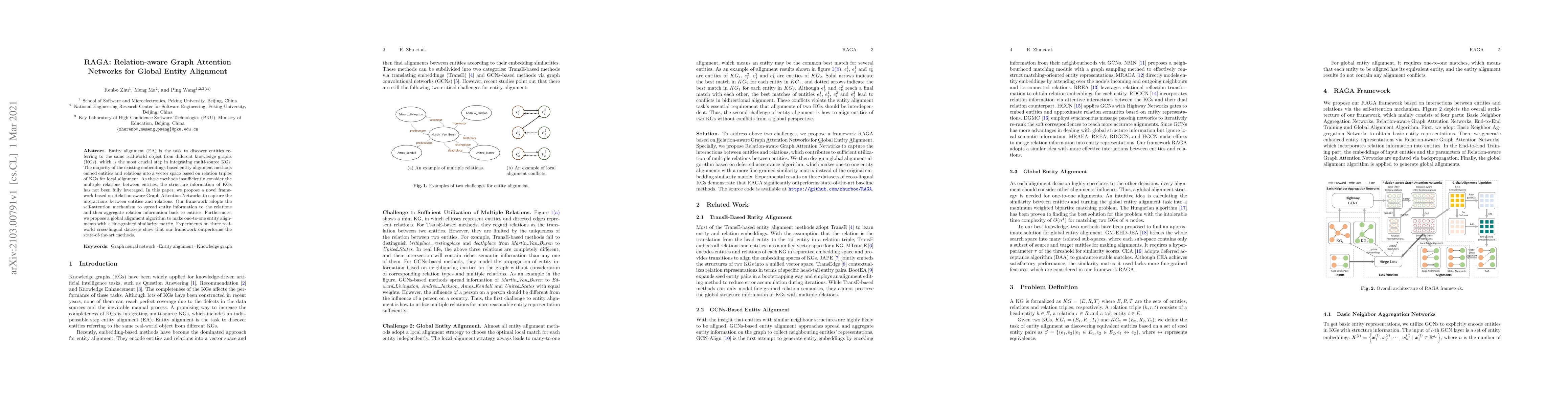 The paper proposes a Relation-aware Graph Attention Networks (RAGA) framework for global entity alignment, utilizing self-attention to enhance the interaction between entities and relations, and achieving superior performance over existing methods on cross-lingual datasets.