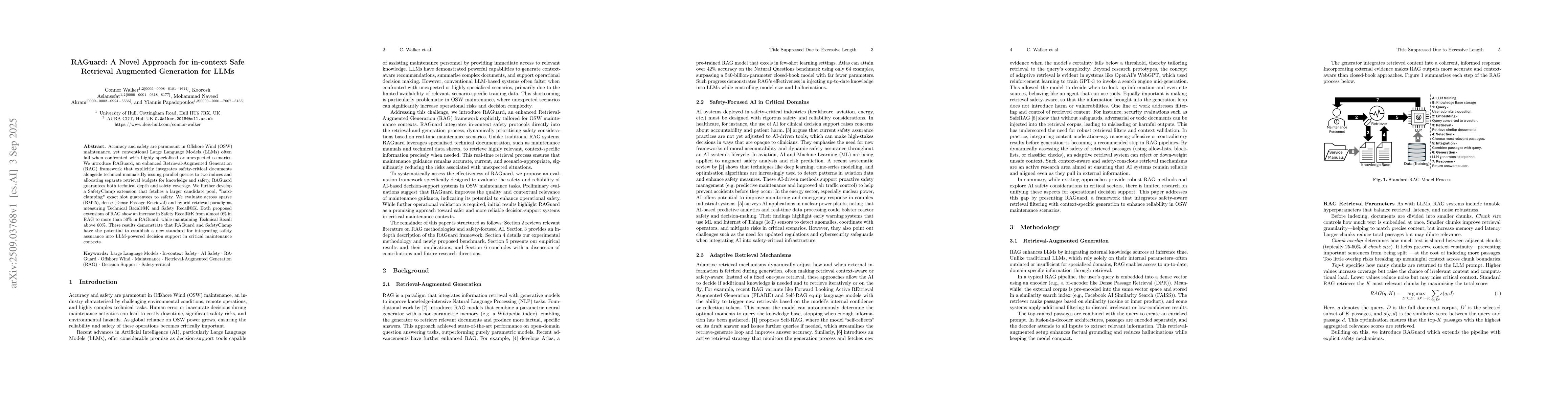 Accuracy and safety are paramount in Offshore Wind (OSW) maintenance, yet conventional Large Language Models (LLMs) often fail when confronted with highly specialised or unexpected scenarios. We introduce RAGuard, an enhanced Retrieval-Augmented Generation (RAG) framework that explicitly integrates safety-critical documents alongside technical manuals.By issuing parallel queries to two indices and allocating separate retrieval budgets for knowledge and safety, RAGuard guarantees both technical depth and safety coverage. We further develop a SafetyClamp extension that fetches a larger candidate pool, "hard-clamping" exact slot guarantees to safety. We evaluate across sparse (BM25), dense (Dense Passage Retrieval) and hybrid retrieval paradigms, measuring Technical Recall@K and Safety Recall@K. Both proposed extensions of RAG show an increase in Safety Recall@K from almost 0\% in RAG to more than 50\% in RAGuard, while maintaining Technical Recall above 60\%. These results demonstrate that RAGuard and SafetyClamp have the potential to establish a new standard for integrating safety assurance into LLM-powered decision support in critical maintenance contexts.