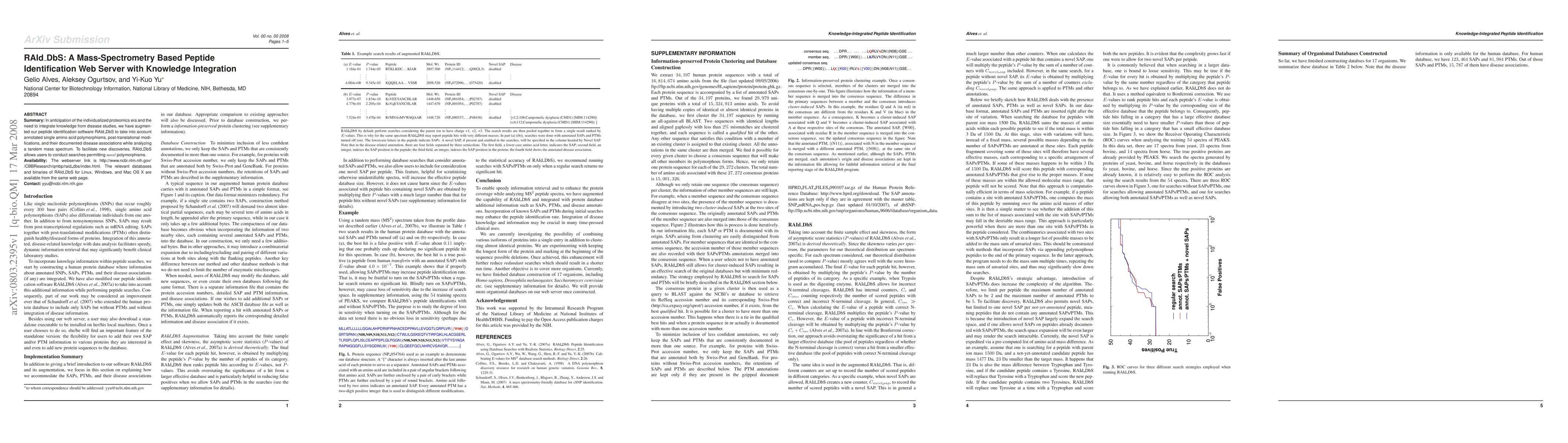 Summary: In anticipation of the individualized proteomics era and the need to integrate knowledge from disease studies, we have augmented our peptide identification software RAId DbS to take into account annotated single amino acid polymorphisms, post-translational modifications, and their documented disease associations while analyzing a tandem mass spectrum. To facilitate new discoveries, RAId DbS allows users to conduct searches permitting novel polymorphisms. Availability: The webserver link is http://www.ncbi.nlm.nih.gov/ /CBBResearch/qmbp/raid dbs/index.html. The relevant databases and binaries of RAId DbS for Linux, Windows, and Mac OS X are available from the same web page. Contact: [email protected]