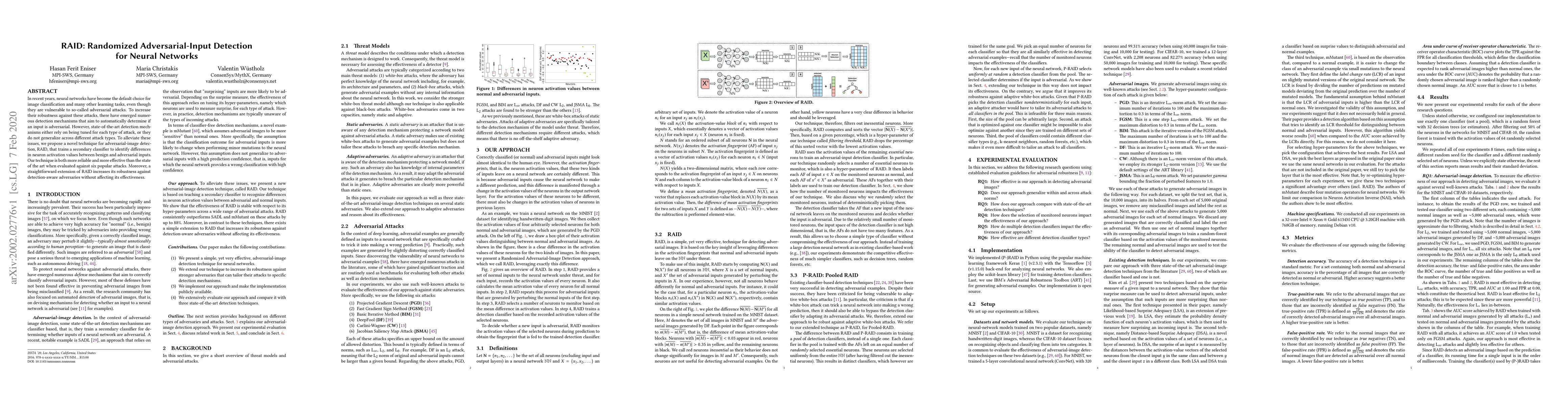 In recent years, neural networks have become the default choice for image classification and many other learning tasks, even though they are vulnerable to so-called adversarial attacks. To increase their robustness against these attacks, there have emerged numerous detection mechanisms that aim to automatically determine if an input is adversarial. However, state-of-the-art detection mechanisms either rely on being tuned for each type of attack, or they do not generalize across different attack types. To alleviate these issues, we propose a novel technique for adversarial-image detection, RAID, that trains a secondary classifier to identify differences in neuron activation values between benign and adversarial inputs. Our technique is both more reliable and more effective than the state of the art when evaluated against six popular attacks. Moreover, a straightforward extension of RAID increases its robustness against detection-aware adversaries without affecting its effectiveness.