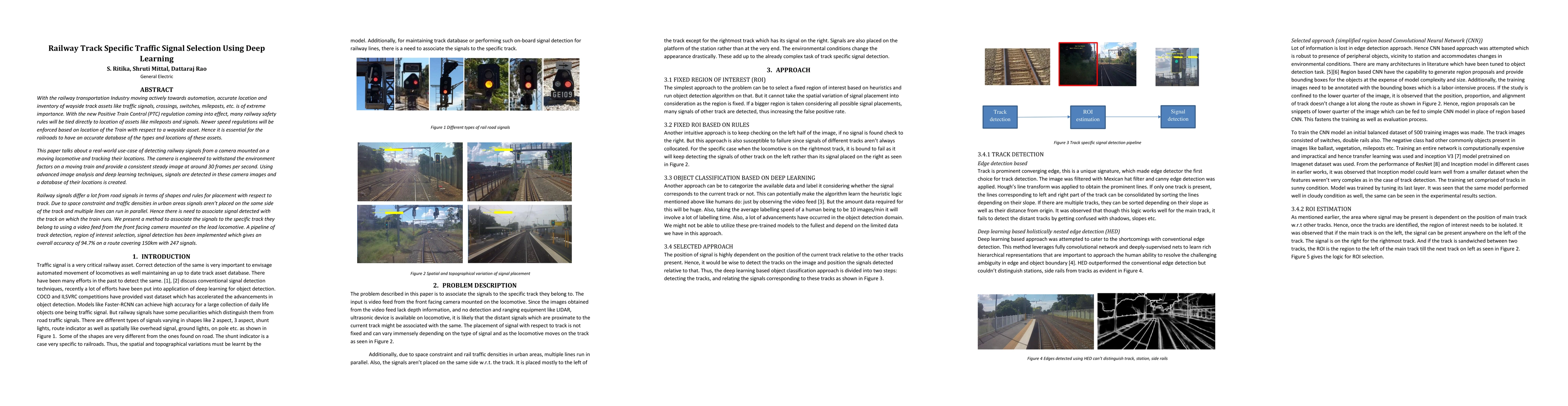 This paper proposes a deep learning-based method for detecting and tracking railway traffic signals using a camera on a moving locomotive. The approach accurately identifies signals and associates them with specific tracks, achieving 94.7% accuracy over a 150km route with 247 signals.