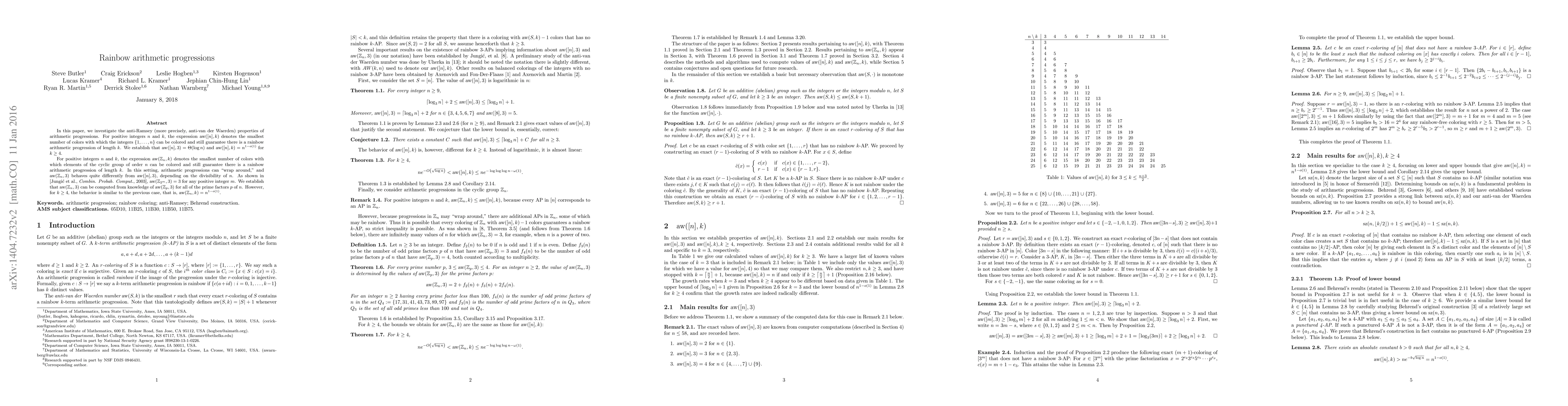 This paper explores the anti-Ramsey properties of arithmetic progressions, determining the minimum number of colors needed to ensure a rainbow progression of length $k$ within a set of integers. It finds $aw([n],3) = \Theta(\log n)$ and $aw([n],k) = n^{1-o(1)}$ for $k \geq 4$. For cyclic groups, $aw(Z_n,3)$ varies based on $n$'s prime factors, while $aw(Z_n,k) = n^{1-o(1)}$ for $k \geq 4$ mirrors the previous case.