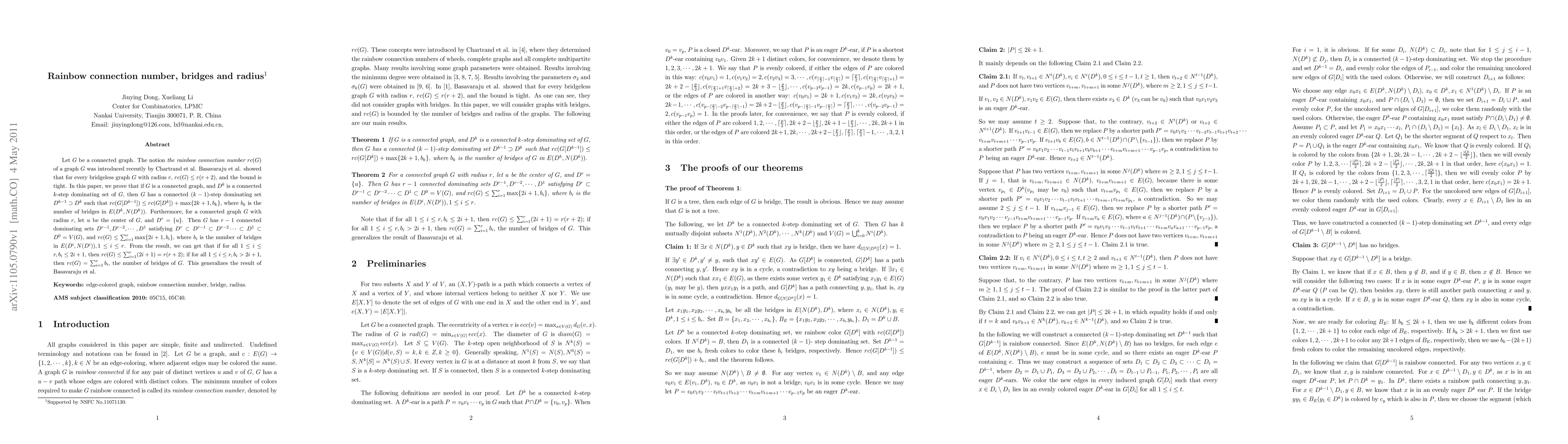 Let $G$ be a connected graph. The notion \emph{the rainbow connection number $rc(G)$} of a graph $G$ was introduced recently by Chartrand et al. Basavaraju et al. showed that for every bridgeless graph $G$ with radius $r$, $rc(G)\leq r(r+2)$, and the bound is tight. In this paper, we prove that if $G$ is a connected graph, and $D^{k}$ is a connected $k$-step dominating set of $G$, then $G$ has a connected $(k-1)$-step dominating set $D^{k-1}\supset D^{k}$ such that $rc(G[D^{k-1}])\leq rc(G[D^{k}])+\max\{2k+1,b_k\}$, where $b_k$ is the number of bridges in $ E(D^{k}, N(D^{k}))$. Furthermore, for a connected graph $G$ with radius $r$, let $u$ be the center of $G$, and $D^{r}=\{u\}$. Then $G$ has $r-1$ connected dominating sets $ D^{r-1}, D^{r-2},..., D^{1}$ satisfying $D^{r}\subset D^{r-1}\subset D^{r-2} ...\subset D^{1}\subset D^{0}=V(G)$, and $rc(G)\leq \sum_{i=1}^{r}\max\{2i+1,b_i\}$, where $b_i$ is the number of bridges in $ E(D^{i}, N(D^{i})), 1\leq i \leq r$. From the result, we can get that if for all $1\leq i\leq r, b_i\leq 2i+1$, then $rc(G)\leq \sum_{i=1}^{r}(2i+1)= r(r+2)$; if for all $1\leq i\leq r, b_i> 2i+1$, then $rc(G)= \sum_{i=1}^{r}b_i$, the number of bridges of $G$. This generalizes the result of Basavaraju et al.