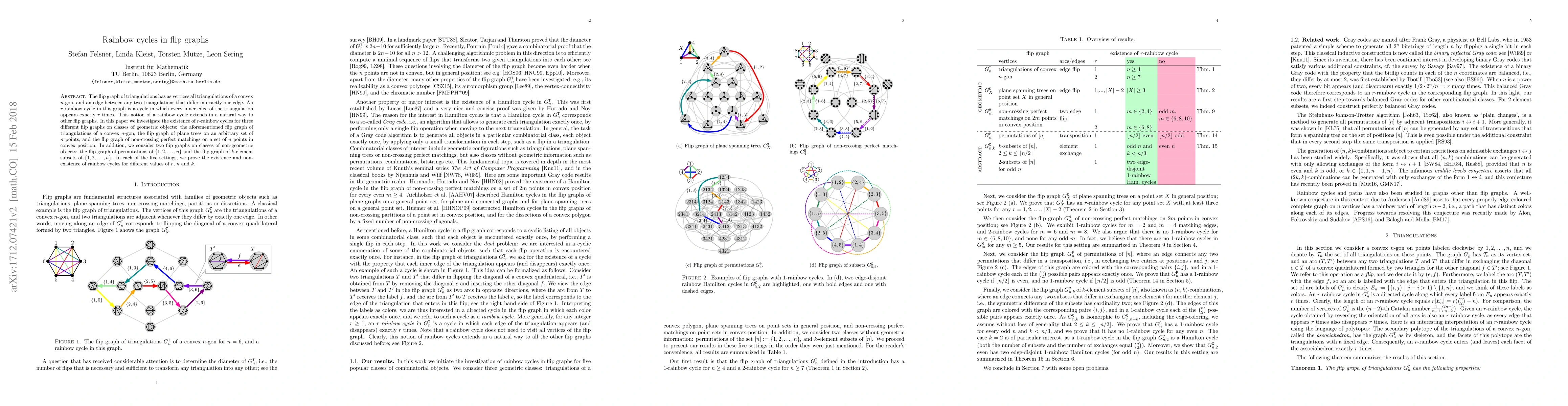 This paper explores the existence of $r$-rainbow cycles in five distinct flip graphs, including triangulations of convex polygons, plane trees, non-crossing perfect matchings, permutations, and $k$-element subsets. The study proves the presence or absence of such cycles for various values of $r$, $n$, and $k$.