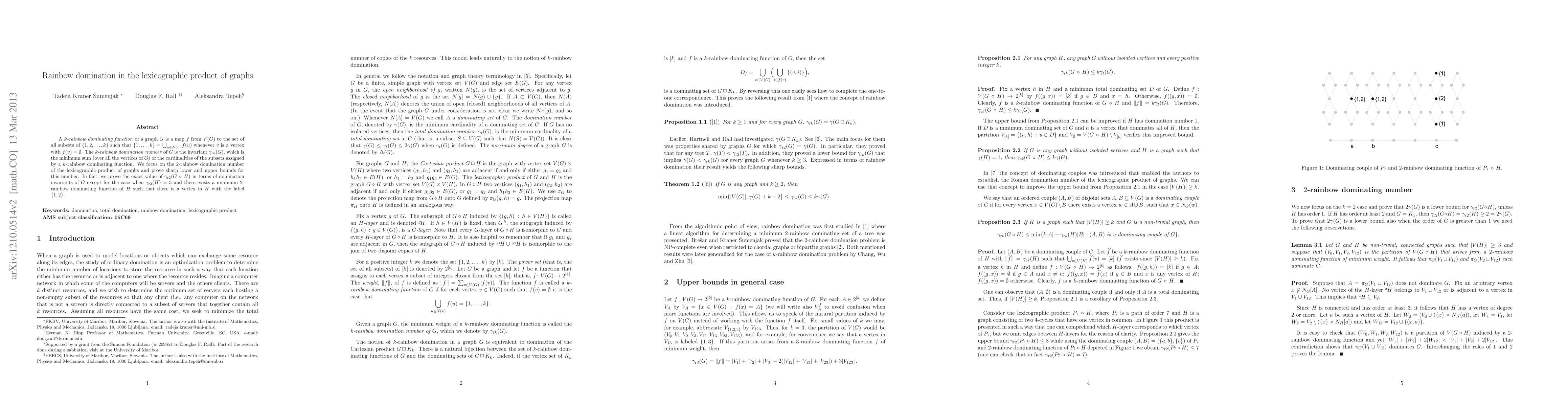 Let k be a positive integer and let f be a map from V(G) to the set of all subsets of {1,2,3,...,k}. The function f is called a k-rainbow dominating function of G provided that whenever u is a vertex of G such that f(u) is the empty set, then for each integer r in {1,2,3,...,k} there is a neighbor x of u such that f(x) contains r. The k-rainbow domination number of G is the minimum sum (over all the vertices of G) of the cardinalities of the subsets assigned by a k-rainbow dominating function of G. The k-rainbow domination number of G is the ordinary domination number of the Cartesian product of G and a complete graph of order k. We focus on the 2-rainbow domination number of the lexicographic product of graphs and prove sharp lower and upper bounds for this number. In fact, we prove the exact value of the 2-rainbow domination number of the lexicographic product of G with H in terms of domination invariants of G, except for the case when H has 2-rainbow domination number 3 and there is a minimum 2-rainbow dominating function of H such that some vertex in H is assigned the label {1,2}.