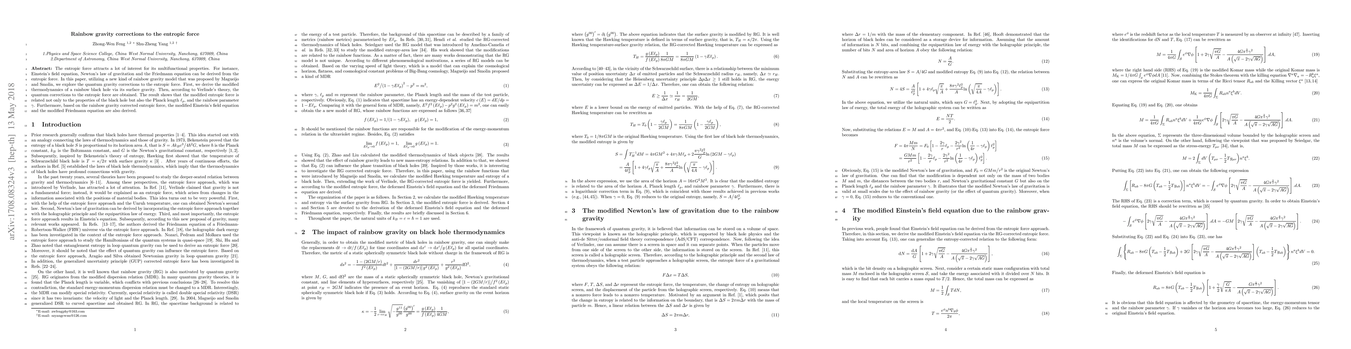 This paper investigates quantum gravity corrections to the entropic force using a rainbow gravity model, deriving modified thermodynamics for a rainbow black hole and showing that the corrected entropic force depends on black hole properties, Planck length, and a rainbow parameter. It also derives modified versions of Einstein's field and Friedmann equations.