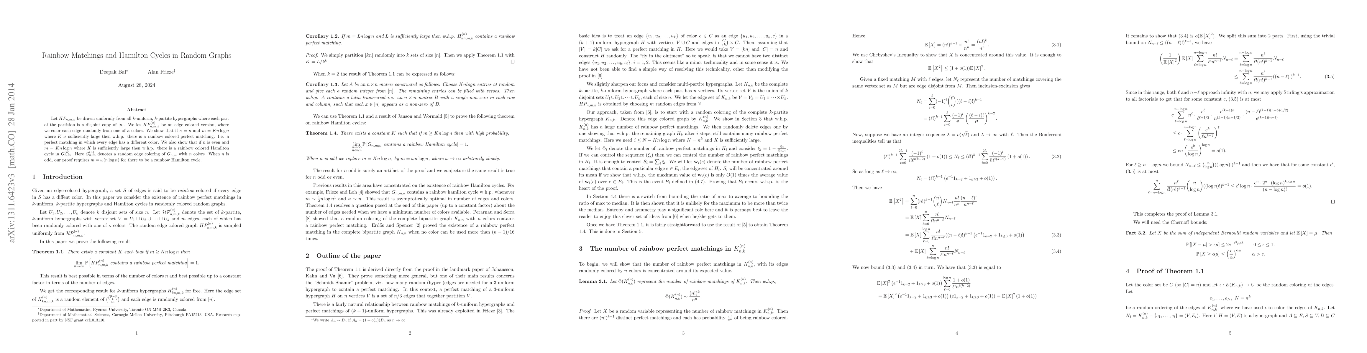 Let $HP_{n,m,k}$ be drawn uniformly from all $k$-uniform, $k$-partite hypergraphs where each part of the partition is a disjoint copy of $[n]$. We let $HP^{(\k)}_{n,m,k}$ be an edge colored version, where we color each edge randomly from one of $\k$ colors. We show that if $\k=n$ and $m=Kn\log n$ where $K$ is sufficiently large then w.h.p. there is a rainbow colored perfect matching. I.e. a perfect matching in which every edge has a different color. We also show that if $n$ is even and $m=Kn\log n$ where $K$ is sufficiently large then w.h.p. there is a rainbow colored Hamilton cycle in $G^{(n)}_{n,m}$. Here $G^{(n)}_{n,m}$ denotes a random edge coloring of $G_{n,m}$ with $n$ colors. When $n$ is odd, our proof requires $m=\om(n\log n)$ for there to be a rainbow Hamilton cycle.