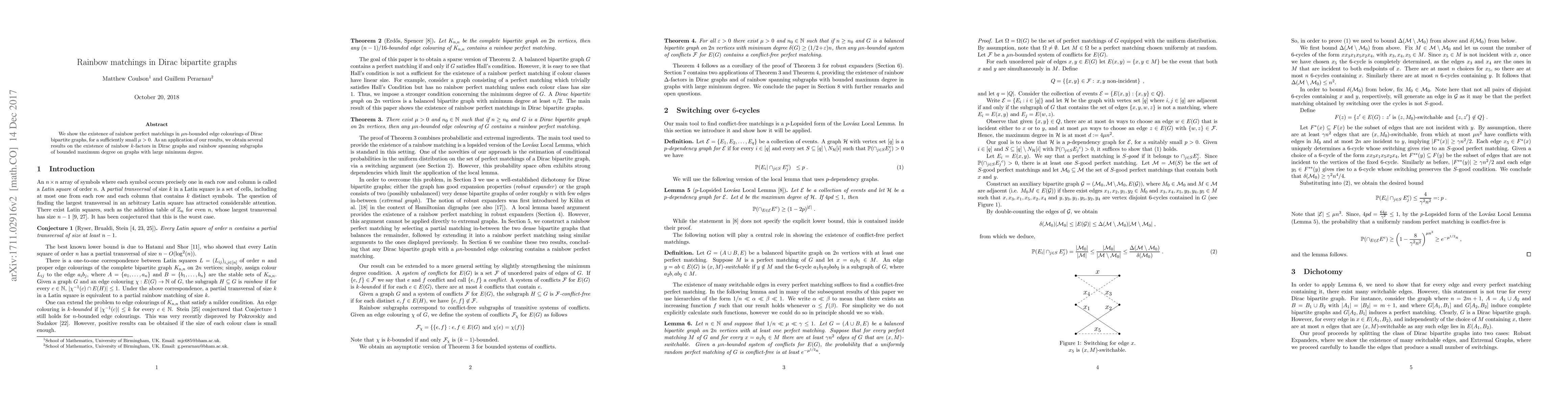 We show the existence of rainbow perfect matchings in $\mu n$-bounded edge colourings of Dirac bipartite graphs, for a sufficiently small $\mu>0$. As an application of our results, we obtain several results on the existence of rainbow $k$-factors in Dirac graphs and rainbow spanning subgraphs of bounded maximum degree on graphs with large minimum degree.