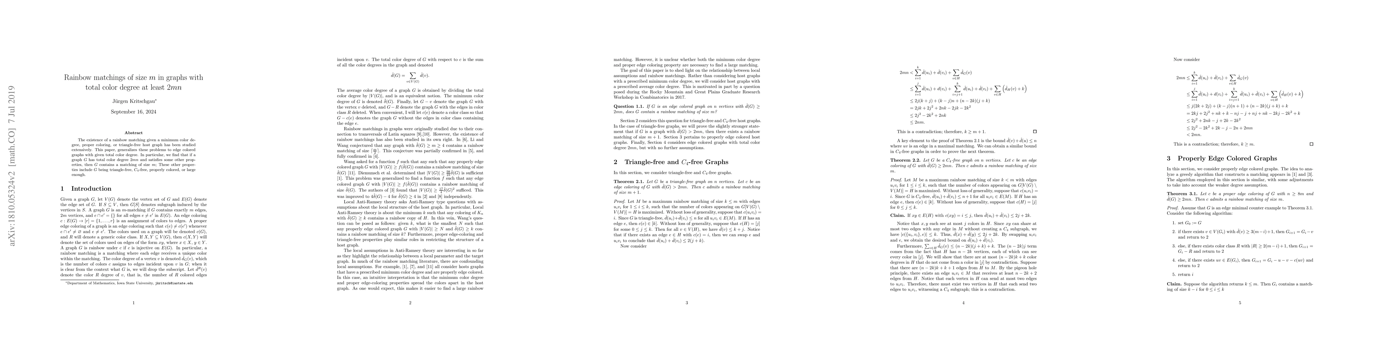 This paper generalizes the study of rainbow matchings in edge-colored graphs, proving that if a graph $G$ has a total color degree of $2mn$ and meets certain conditions, it contains a matching of size $m$. The conditions include properties like being triangle-free, $C_4$-free, properly colored, or sufficiently large.