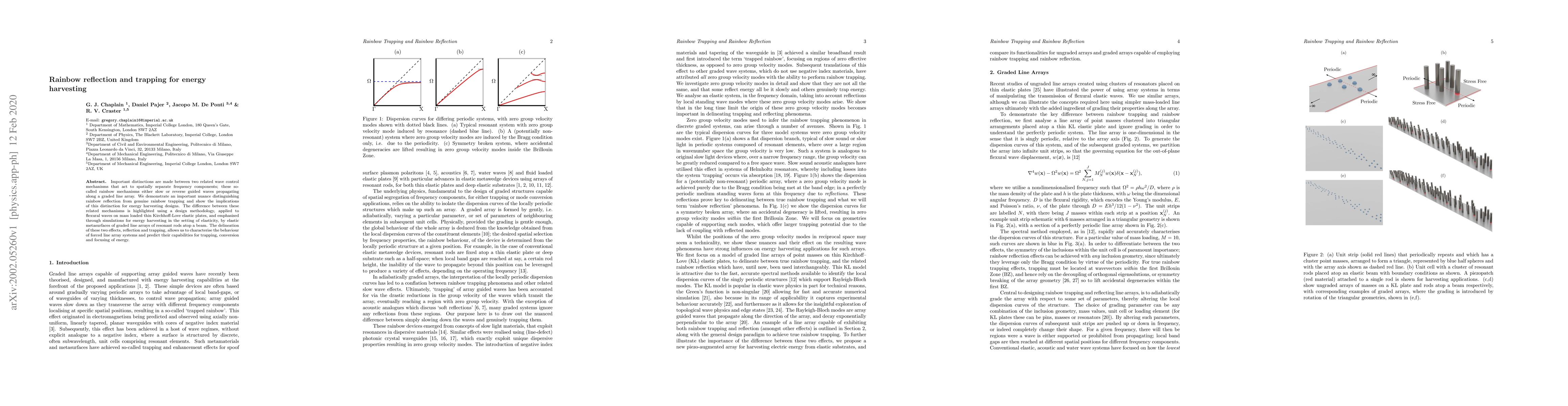 Important distinctions are made between two related wave control mechanisms that act to spatially separate frequency components; these so-called rainbow mechanisms either slow or reverse guided waves propagating along a graded line array. We demonstrate an important nuance distinguishing rainbow reflection from genuine rainbow trapping and show the implications of this distinction for energy harvesting designs. The difference between these related mechanisms is highlighted using a design methodology, applied to flexural waves on mass loaded thin Kirchhoff-Love elastic plates, and emphasised through simulations for energy harvesting in the setting of elasticity, by elastic metasurfaces of graded line arrays of resonant rods atop a beam. The delineation of these two effects, reflection and trapping, allows us to characterise the behaviour of forced line array systems and predict their capabilities for trapping, conversion and focusing of energy.