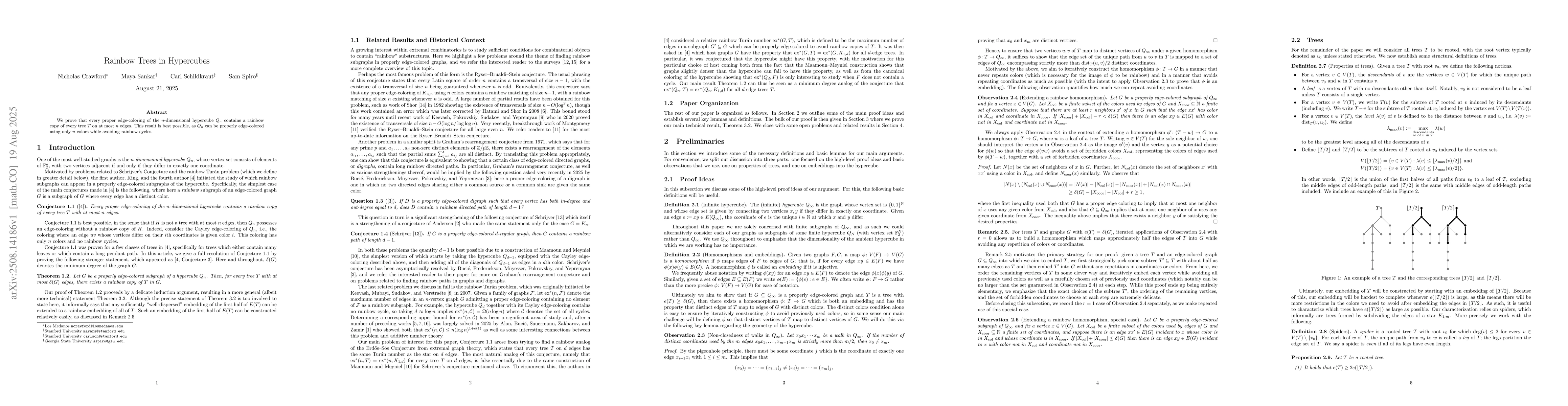 The paper employs a combination of graph theory and extensive induction arguments to prove the existence of rainbow trees in hypercubes under specific edge-coloring conditions.