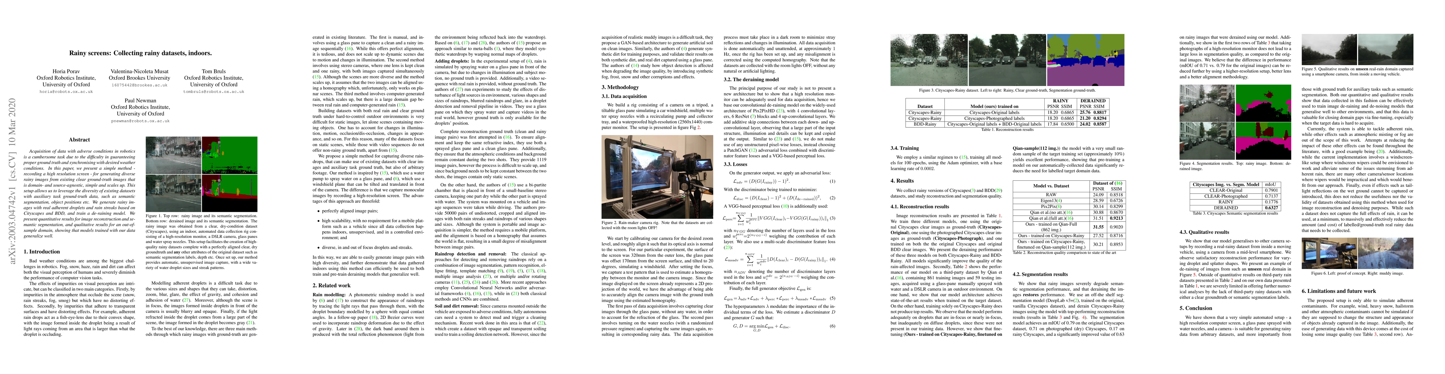 Acquisition of data with adverse conditions in robotics is a cumbersome task due to the difficulty in guaranteeing proper ground truth and synchronising with desired weather conditions. In this paper, we present a simple method - recording a high resolution screen - for generating diverse rainy images from existing clear ground-truth images that is domain- and source-agnostic, simple and scales up. This setup allows us to leverage the diversity of existing datasets with auxiliary task ground-truth data, such as semantic segmentation, object positions etc. We generate rainy images with real adherent droplets and rain streaks based on Cityscapes and BDD, and train a de-raining model. We present quantitative results for image reconstruction and semantic segmentation, and qualitative results for an out-of-sample domain, showing that models trained with our data generalize well.