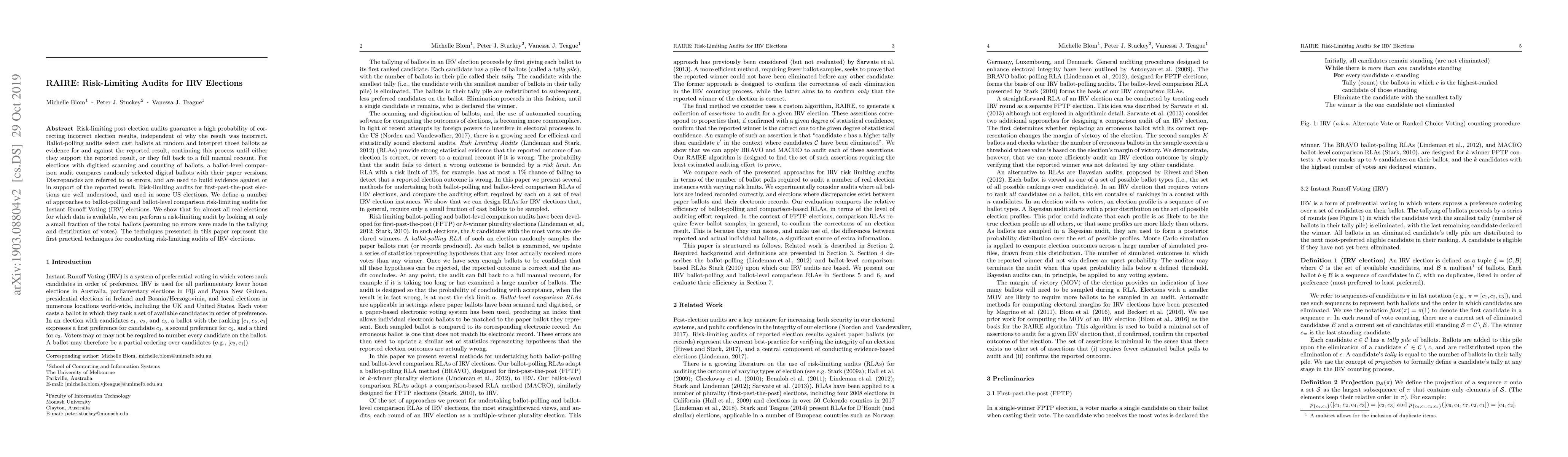 This paper introduces RAIRE, a method for conducting risk-limiting audits in Instant Runoff Voting (IRV) elections to ensure the accuracy of results. It outlines various audit techniques, demonstrating that a small sample of ballots can often verify election outcomes with high confidence.