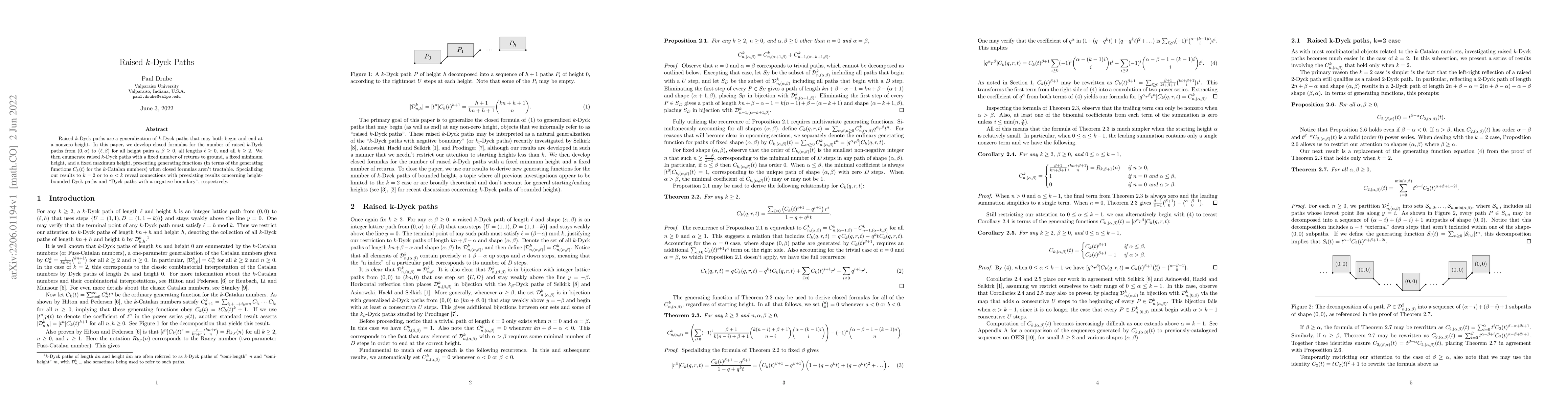 Raised $k$-Dyck paths are a generalization of $k$-Dyck paths that may both begin and end at a nonzero height. In this paper, we develop closed formulas for the number of raised $k$-Dyck paths from $(0,\alpha)$ to $(\ell,\beta)$ for all height pairs $\alpha,\beta \geq 0$, all lengths $\ell \geq 0$, and all $k \geq 2$. We then enumerate raised $k$-Dyck paths with a fixed number of returns to ground, a fixed minimum height, and a fixed maximum height, presenting generating functions (in terms of the generating functions $C_k(t)$ for the $k$-Catalan numbers) when closed formulas aren't tractable. Specializing our results to $k=2$ or to $\alpha < k$ reveal connections with preexisting results concerning height-bounded Dyck paths and "Dyck paths with a negative boundary", respectively.