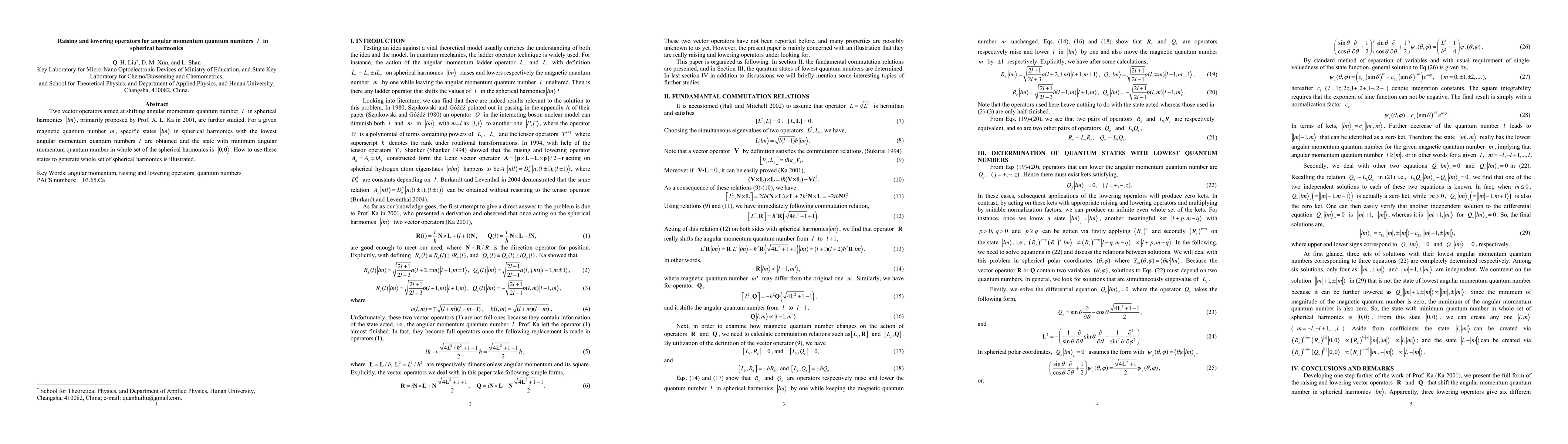 This paper explores two vector operators introduced by Prof. X. L. Ka in 2001 for shifting the angular momentum quantum number l in spherical harmonics. It demonstrates how to generate the entire set of spherical harmonics using the state with the minimum angular momentum quantum number, |0,0>.