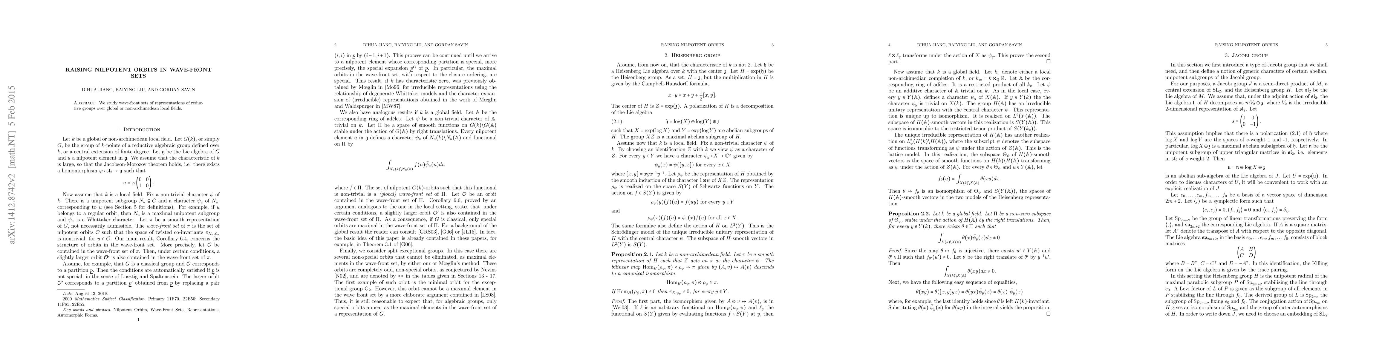 Summary: This paper investigates the behavior of nilpotent orbits in the wave-front sets of representations of reductive groups over global or non-archimedean local fields, focusing on the raising of these orbits.