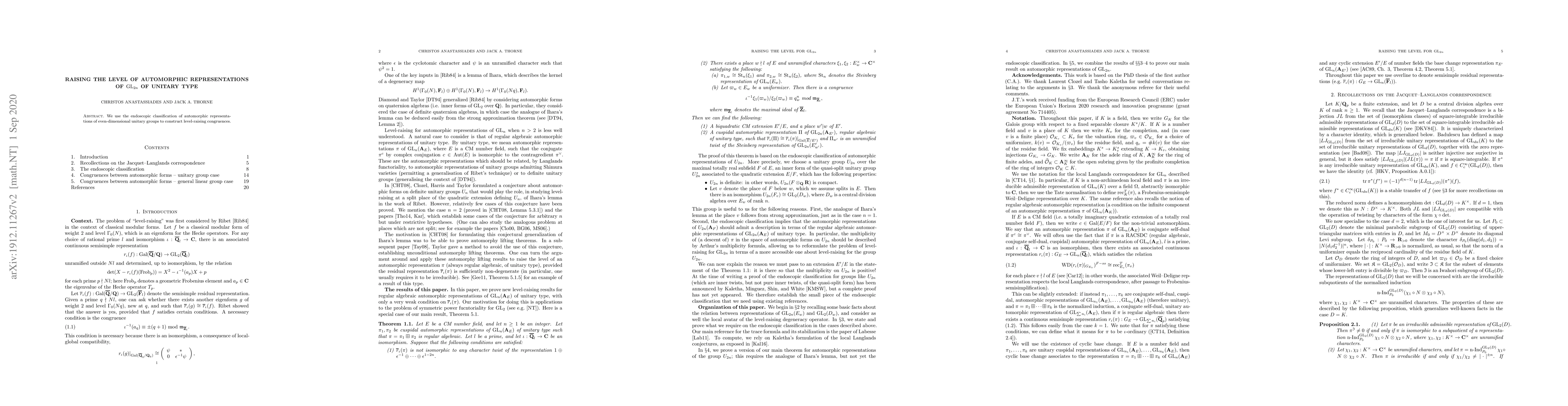 Summary: This paper employs endoscopic techniques to classify automorphic representations of even-dimensional unitary groups, aiming to establish level-raising congruences for these representations.