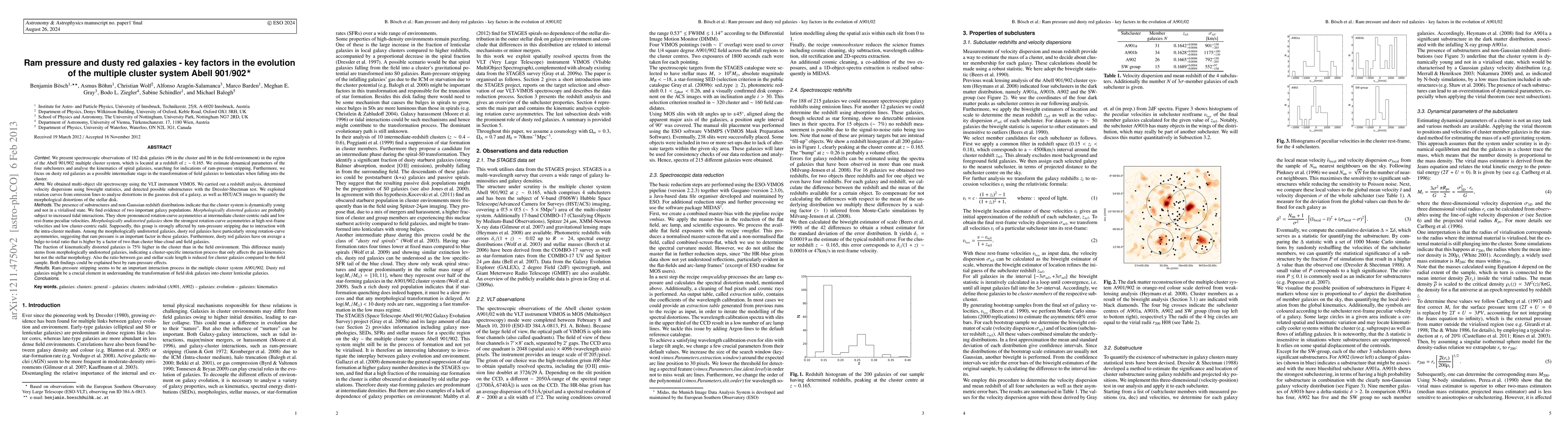 This study investigates the Abell 901/902 cluster system, revealing that ram pressure and tidal interactions significantly affect galaxy evolution. Morphologically distorted galaxies experience increased tidal interactions, while undistorted galaxies, especially dusty red ones, show strong rotation curve asymmetries likely due to ram-pressure stripping from the intra-cluster medium.
