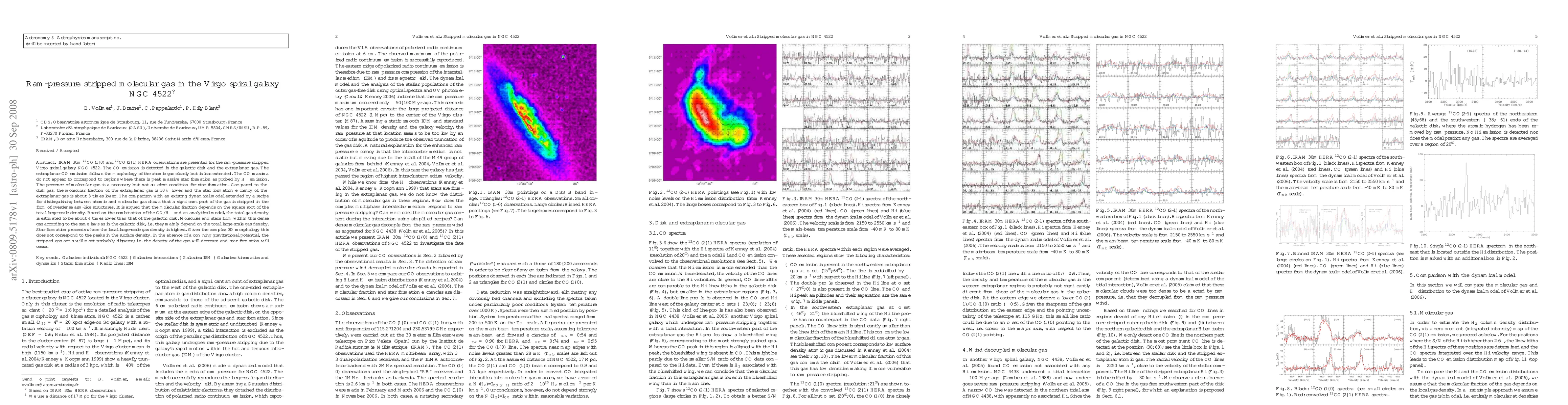 The research examines NGC 4522, a Virgo spiral galaxy undergoing ram-pressure stripping. Using IRAM 30m 12CO(1-0) and 12CO(2-1) HERA observations, it's found that extraplanar CO gas, though necessary for star formation, isn't sufficient, showing lower molecular fractions and star formation efficiencies compared to disk gas. The study suggests that gas is stripped in overdense arm-like structures, with molecular gas formation depending on large-scale gas density. The stripped gas arms are predicted to disperse, ceasing star formation.