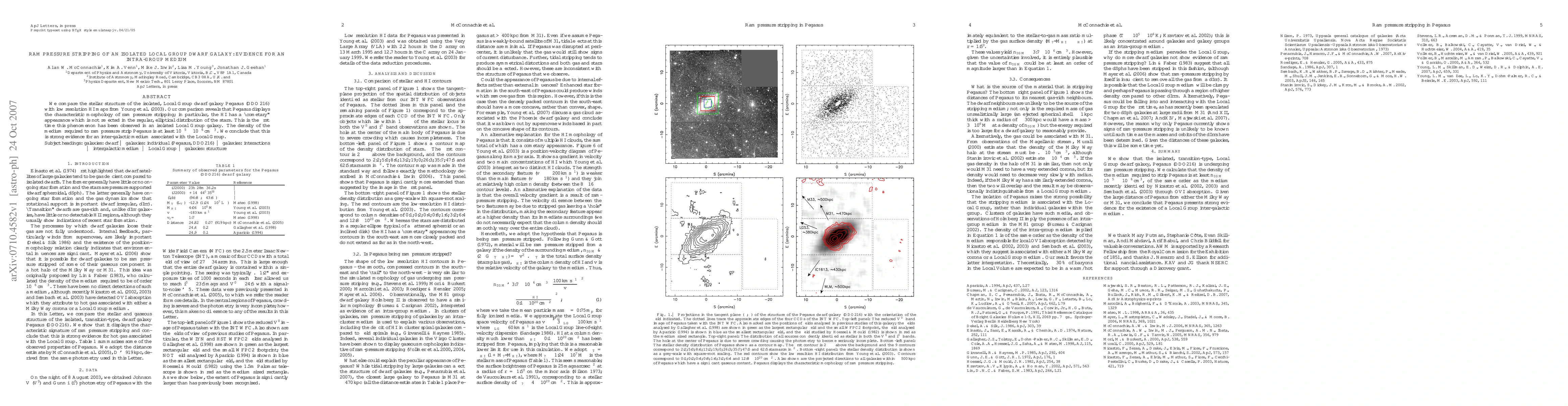 We compare the stellar structure of the isolated, Local Group dwarf galaxy Pegasus (DDO216) with low resolution HI maps from Young et al. (2003). Our comparison reveals that Pegasus displays the characteristic morphology of ram pressure stripping; in particular, the HI has a ``cometary'' appearance which is not reflected in the regular, elliptical distribution of the stars. This is the first time this phenomenon has been observed in an isolated Local Group galaxy. The density of the medium required to ram pressure strip Pegasus is at least $10^{-5} - 10^{-6}$, cm$^{-3}$. We conclude that this is strong evidence for an inter-galactic medium associated with the Local Group.