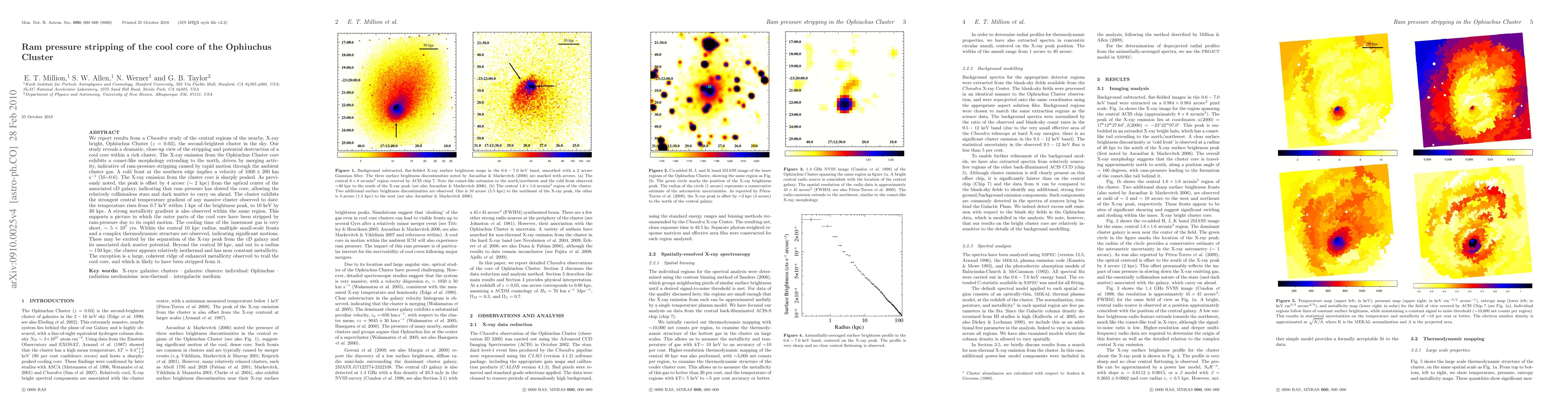 This study using Chandra reveals the dramatic ram-pressure stripping of the cool core in the Ophiuchus Cluster, showing a comet-like X-ray emission and a cold front indicative of rapid motion through the cluster gas. The cluster's central temperature gradient and metallicity suggest significant stripping of the cool core.