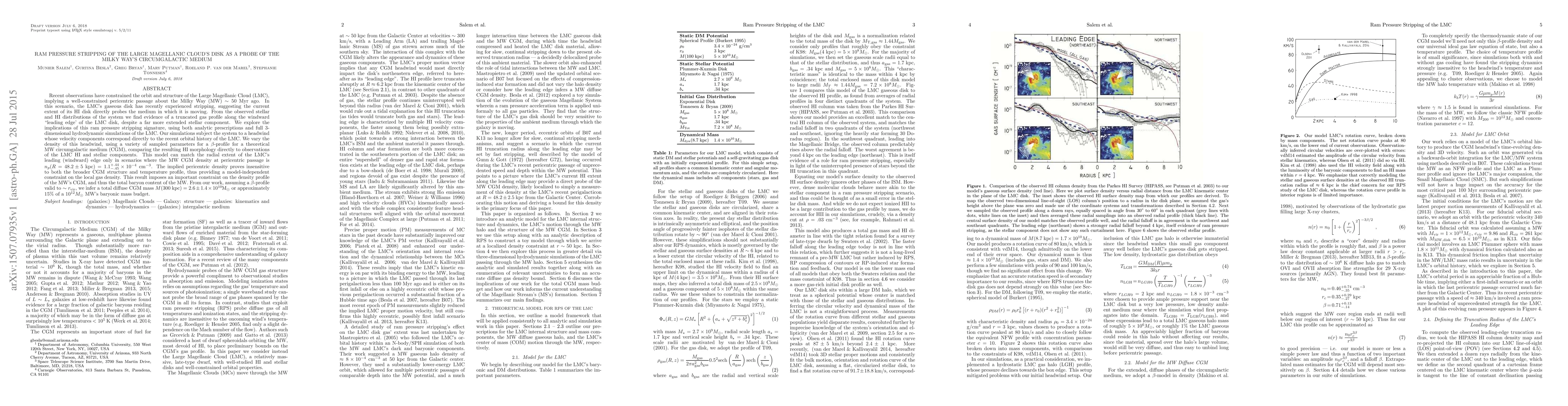 This paper investigates the ram pressure stripping of the Large Magellanic Cloud (LMC) as it passed near the Milky Way, using this interaction to probe the Milky Way's circumgalactic medium (CGM). The study finds that the LMC's gas disk morphology matches simulations where the CGM density at pericentric passage is n(R = 48.2 kpc) = 1.1 x 1e-4 cm^-3, providing a constraint on the CGM density profile and estimating the CGM mass to be about 15% of the Milky Way's baryonic mass.