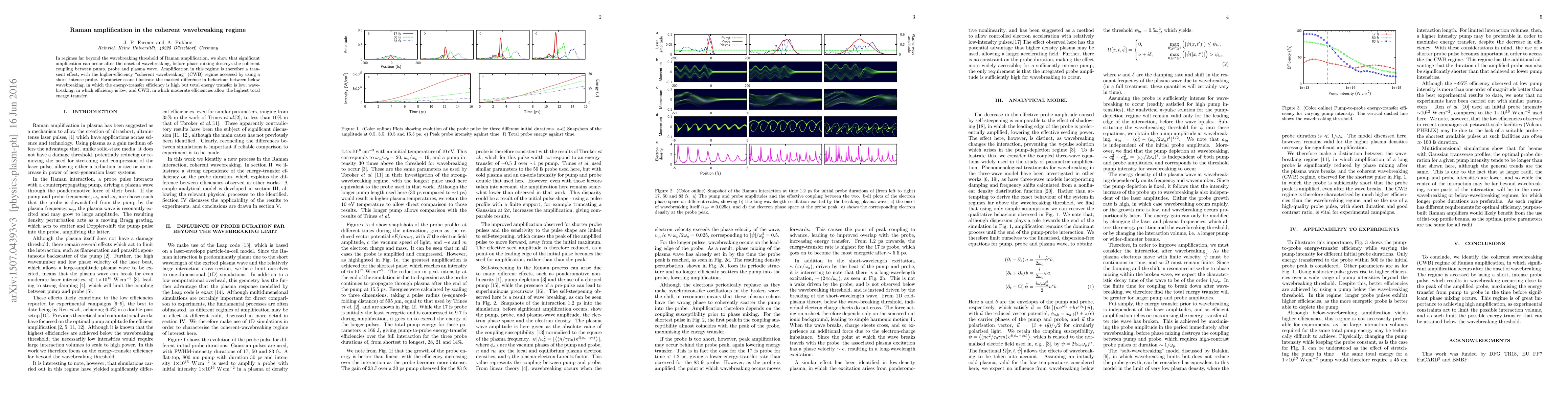 This paper investigates Raman amplification in the coherent wavebreaking regime, demonstrating that significant amplification occurs after wavebreaking onset before phase mixing disrupts coherent coupling. The "coherent wavebreaking" regime, accessed with a short, intense probe, allows for the highest total energy transfer despite moderate efficiency.