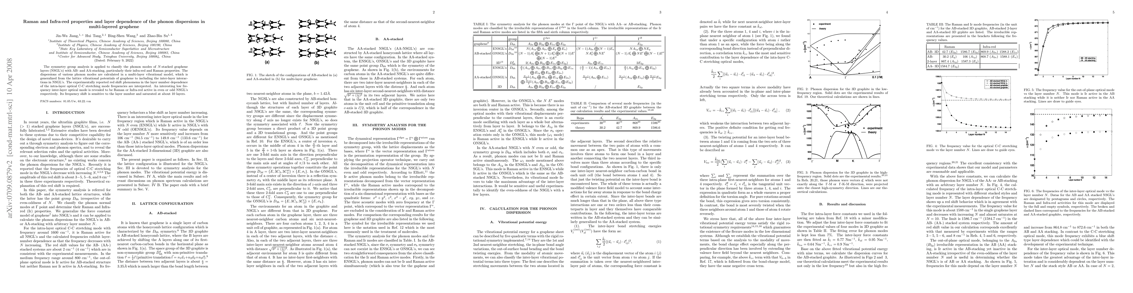 Researchers investigated how phonon dispersions change with layer number in multi-layered graphene, finding a low-frequency inter-layer mode sensitive to layer number that appears differently in even or odd layers.