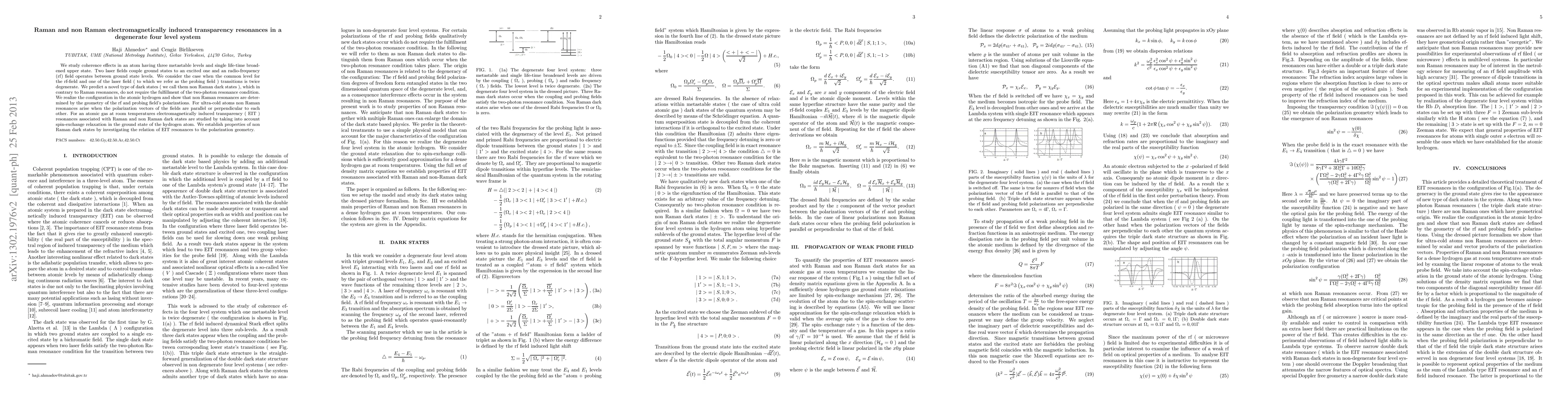 We study coherence effects in an atom having three metastable levels and single life-time broadened upper state. Two laser fields couple ground states to an excited one and an radio-frequency (rf) field operates between ground state levels. We consider the case when the common level for the rf-field and one of the laser field (to which we refer as the probing field) transitions is twice degenerate. We predict a novel type of dark states (we call them non Raman dark states), which in contrary to Raman resonances, do not require the fulfillment of the two-photon resonance condition. We realize the configuration in the atomic hydrogen and show that non Raman resonances are determined by the geometry of the rf and probing field's polarizations. For ultra-cold atoms non Raman resonances arise when the polarization vectors of the fields are parallel or perpendicular to each other. For an atomic gas at room temperatures electromagnetically induced transparency (EIT) resonances associated with Raman and non Raman dark states are studied by taking into account spin-exchange relaxation in the ground state of the hydrogen atom. We establish properties of non Raman dark states by investigating the relation of EIT resonances to the polarization geometry.