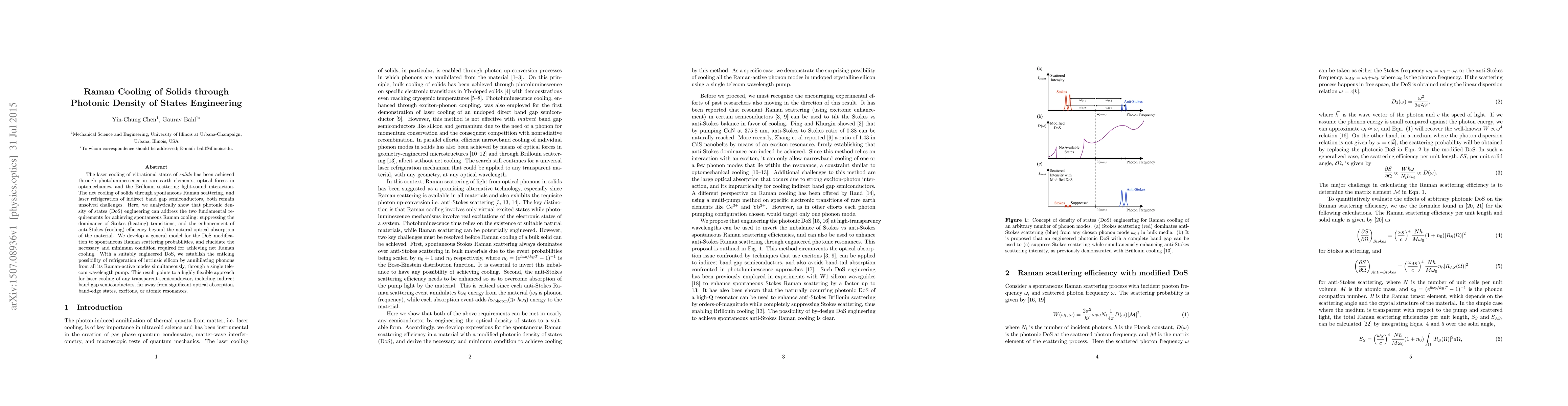 Researchers demonstrate a method to cool solids through photonic density of states engineering, overcoming challenges in spontaneous Raman cooling and laser refrigeration, with potential applications for transparent semiconductors like silicon.