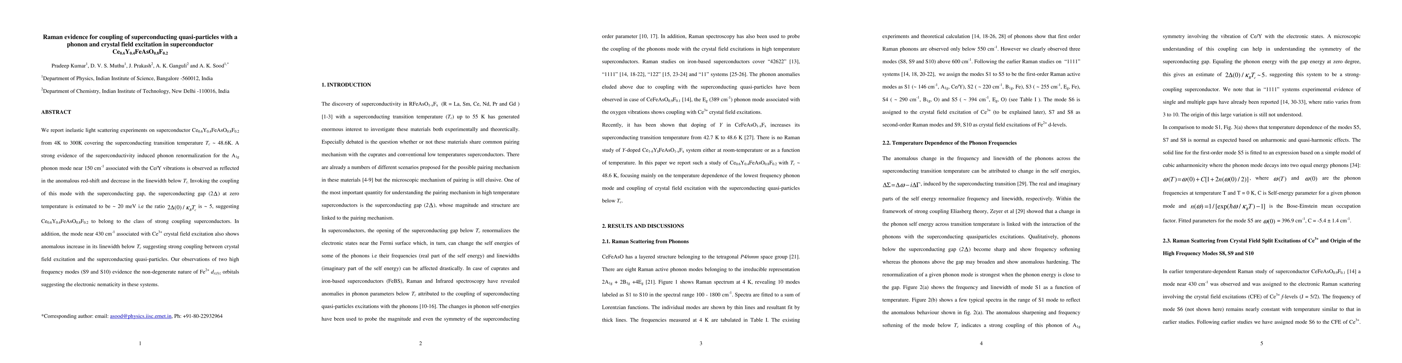 We report inelastic light scattering experiments on superconductor Ce0.6Y0.4FeAsO0.8F0.2 from 4K to 300K covering the superconducting transition temperature Tc ~ 48.6K. A strong evidence of the superconductivity induced phonon renormalization for the A1g phonon mode near 150 cm-1 associated with the Ce/Y vibrations is observed as reflected in the anomalous red-shift and decrease in the linewidth below Tc. Invoking the coupling of this mode with the superconducting gap, the superconducting gap (2) at zero temperature is estimated to be ~ 20 meV i.e the ratio is ~ 5, suggesting Ce0.6Y0.4FeAsO0.8F0.2 to belong to the class of strong coupling superconductors. In addition, the mode near 430 cm-1 associated with Ce3+ crystal field excitation also shows anomalous increase in its linewidth below Tc suggesting strong coupling between crystal field excitation and the superconducting quasi-particles. Our observations of two high frequency modes (S9 and S10) evidence the non-degenerate nature of Fe2+ dxz/yz orbitals suggesting the electronic nematicity in these systems.