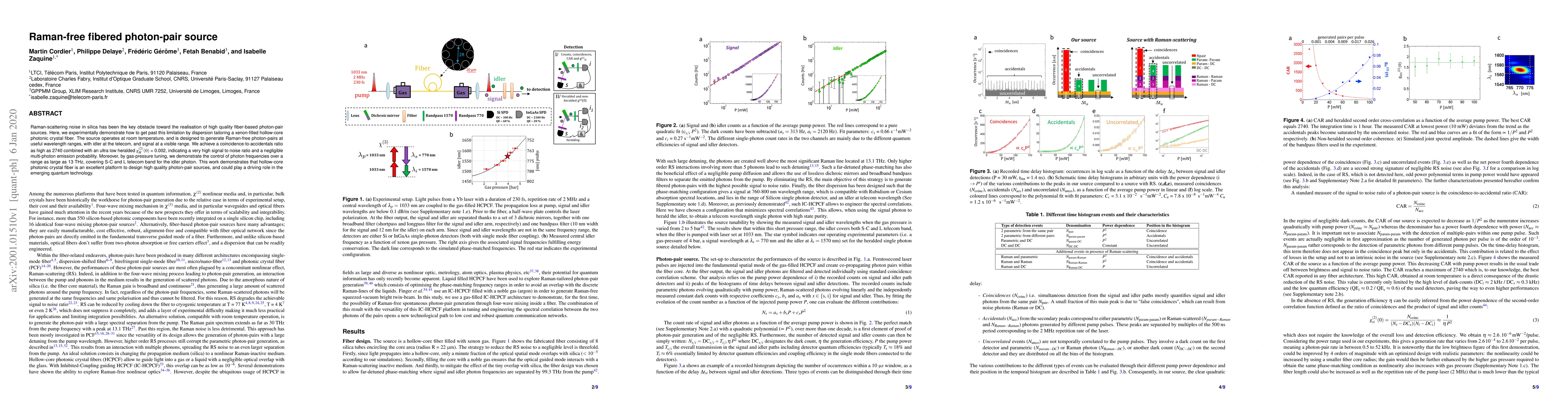 Raman-scattering noise in silica has been the key obstacle toward the realisation of high quality fiber-based photon-pair sources. Here, we experimentally demonstrate how to get past this limitation by dispersion tailoring a xenon-filled hollow-core photonic crystal fiber. The source operates at room temperature, and is designed to generate Raman-free photon-pairs at useful wavelength ranges, with idler at the telecom, and signal at a visible range. We achieve a coincidence-to-accidentals ratio (2) as high as 2740 combined with an ultra low heralded g H (0) = 0.002, indicating a very high signal to noise ratio and a negligible multi-photon emission probability. Moreover, by gas-pressure tuning, we demonstrate the control of photon frequencies over a range as large as 13 THz, covering S-C and L telecom band for the idler photon. This work demonstrates that hollow-core photonic crystal fiber is an excellent platform to design high quality photon-pair sources, and could play a driving role in the emerging quantum technology.