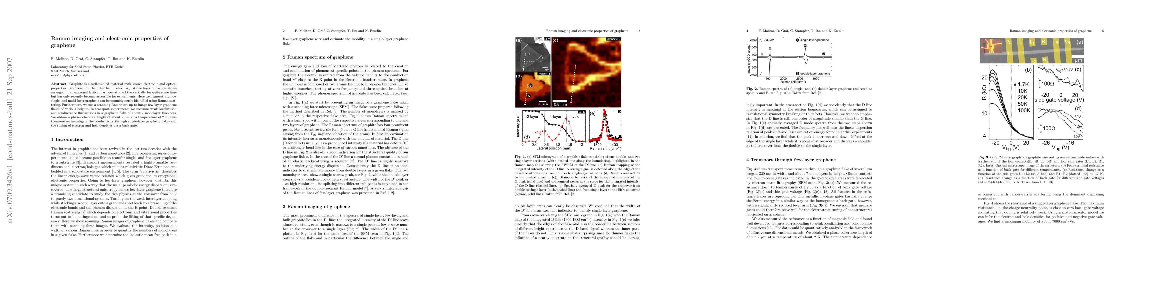 This paper demonstrates the use of Raman imaging to distinguish single- and multi-layer graphene and employs scanning Raman to visualize few-layer graphene flakes. It also investigates electronic properties, finding weak localization and a phase-coherence length of 2 µm in 7-monolayer graphene at 2 K.