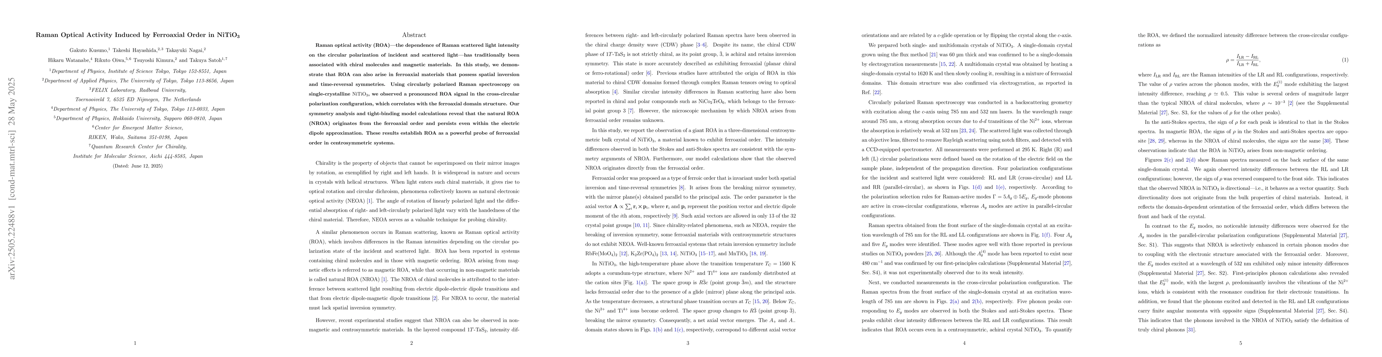 The study utilized circularly polarized Raman spectroscopy on single-crystalline NiTiO3 to investigate Raman optical activity (ROA).