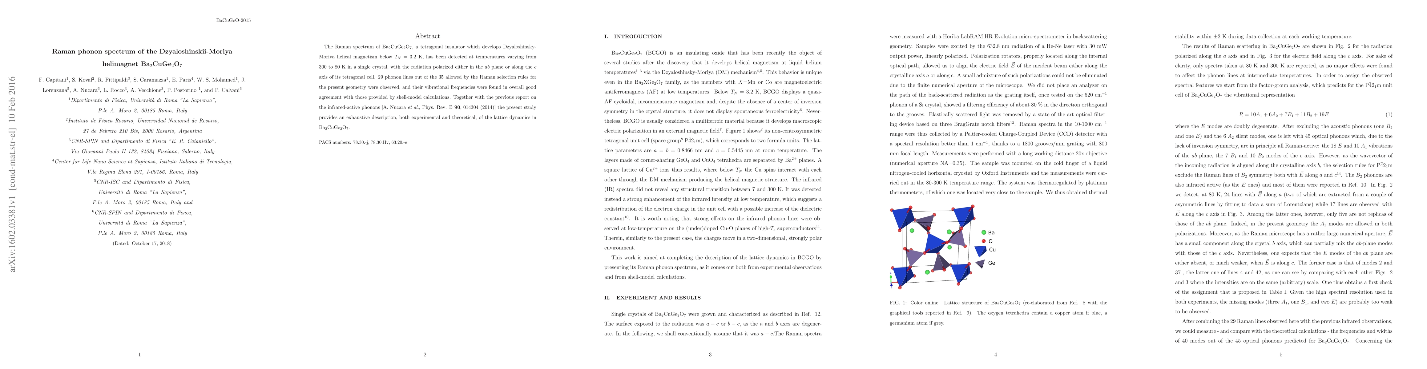 The Raman spectrum of Ba2CuGe2O7, a tetragonal insulator which develops Dzyaloshinsky- Moriya helical magnetism below TN = 3.2 K, has been detected at temperatures varying from 300 to 80 K in a single crystal, with the radiation polarized either in the ab plane or along the c axis of its tetragonal cell. 29 phonon lines out of the 35 allowed by the Raman selection rules for the present geometry were observed, and their vibrational frequencies were found in overall good agreement with those provided by shell-model calculations. Together with the previous report on the infrared-active phonons [A. Nucara et al., Phys. Rev. B 90, 014304 (2014)] the present study provides an exhaustive description, both experimental and theoretical, of the lattice dynamics in Ba2CuGe2O7.