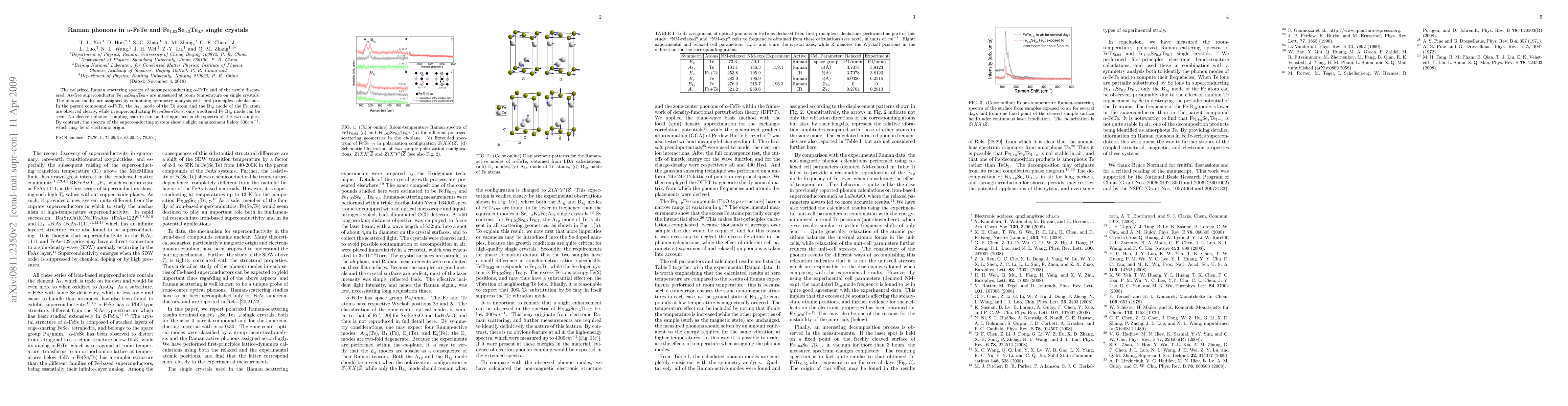 The Raman phonons of $\alpha$-FeTe and Fe$_{1.03}$Se$_{0.3}$Te$_{0.7}$ single crystals are analyzed; $\alpha$-FeTe exhibits clear A$_{1g}$ and B$_{1g}$ phonon modes, while Fe$_{1.03}$Se$_{0.3}$Te$_{0.7}$ shows a softened Fe B$_{1g}$ mode with no distinct electron-phonon coupling, hinting at electronic enhancements in the superconducting system.